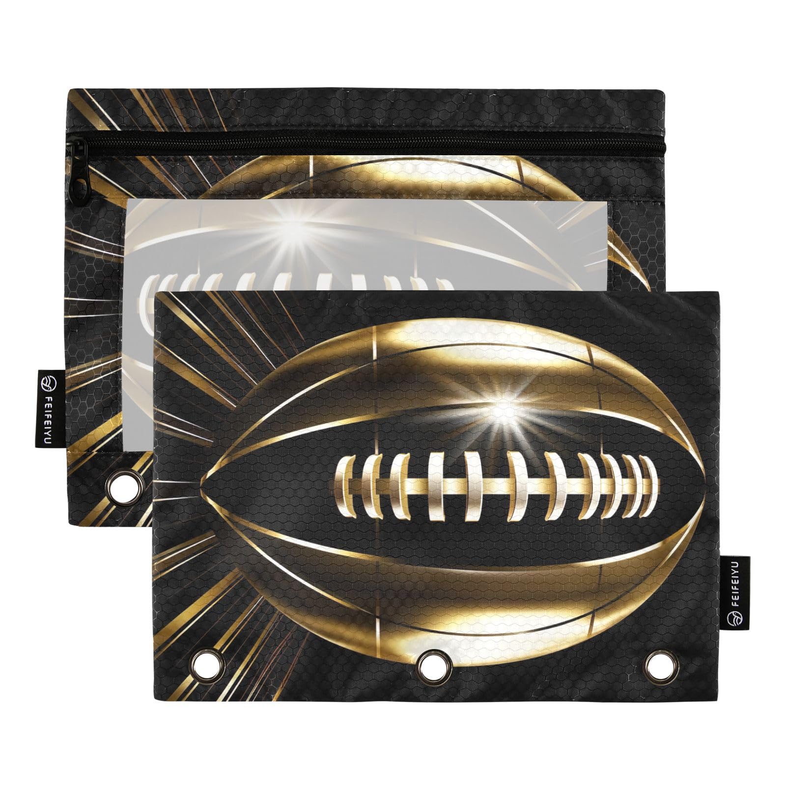 CHIFIGNO Gold American Football 3 Ringed Pencil Pouch, Large Pencil Pouch Zipper Binder Pouch Clear, Boys Pencil Pouch for School 2 Pack|Office Supplies