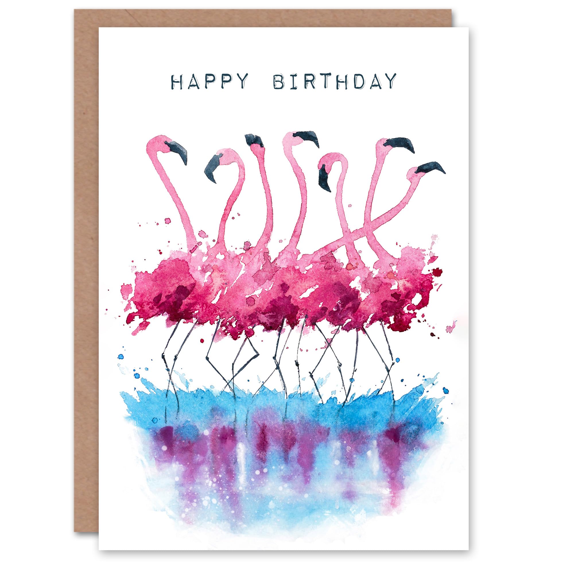 Artery8 Happy Birthday Dancing Flamingos Watercolor Birthday Card|Office Supplies