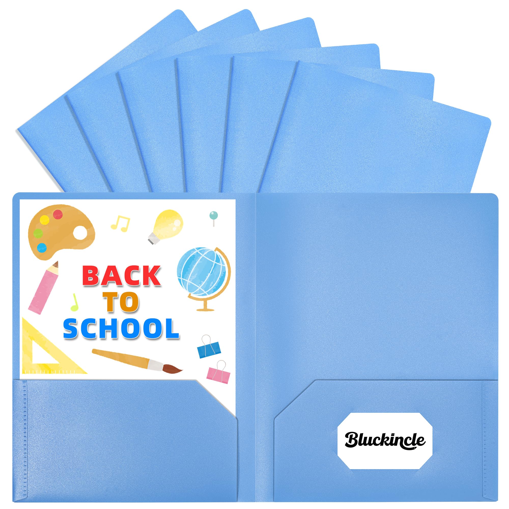6 Pack Folders with Pockets Blue, 2 Pocket Plastic Folder with Pockets for School File Folder for Documents Letter Size with Business Card Slot Back|Office Supplies