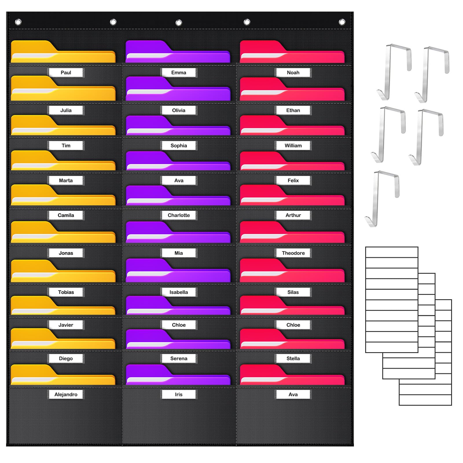 AKAYOK Hanging File Folders for Legal/Letter Size, 30-Pocket Wall File Organizer Black Pocket Chart for Classroom, Office, and Home – Perfect for|Office Supplies