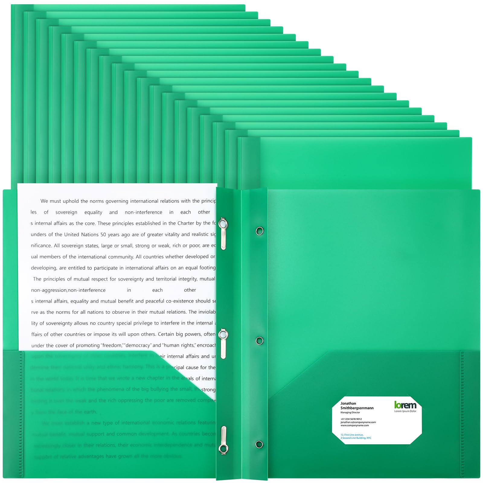 Patelai 48 Pcs Plastic Folders with 2 Pockets and 3 Prongs Home Folders with Card Slot Letter Size Heavy Duty Report Covers for Back to School(Green,|Office Supplies