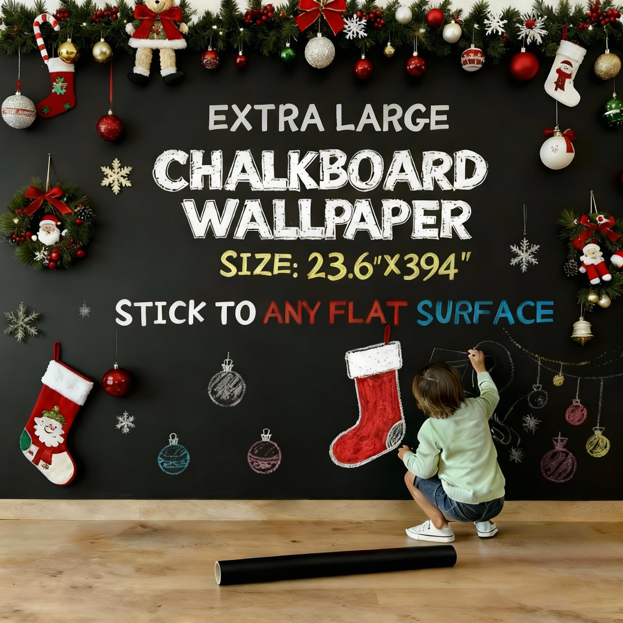 Oxdigi Extra Large Chalkboard Paper 23x394in Peel & Stick, Removable Blackboard Wall Decal for Kids Room, Easy Self Adhesive, Thick 0.3mm CPP Material|Office Supplies