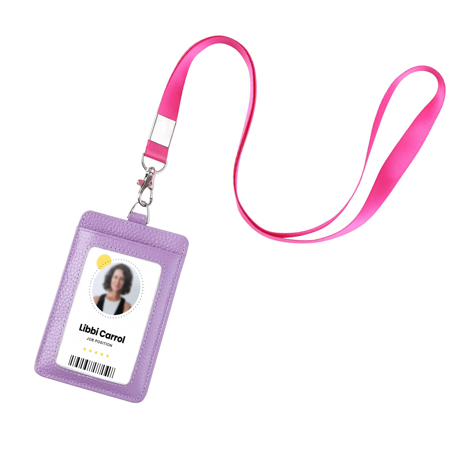 Genuine Leather id Badge Holder with Lanyard,Soft,ID Card Holder,Up to 20 Colors and Grains to Choose,frommultiple Card Slots,Vertical Work Name Badge|Office Supplies