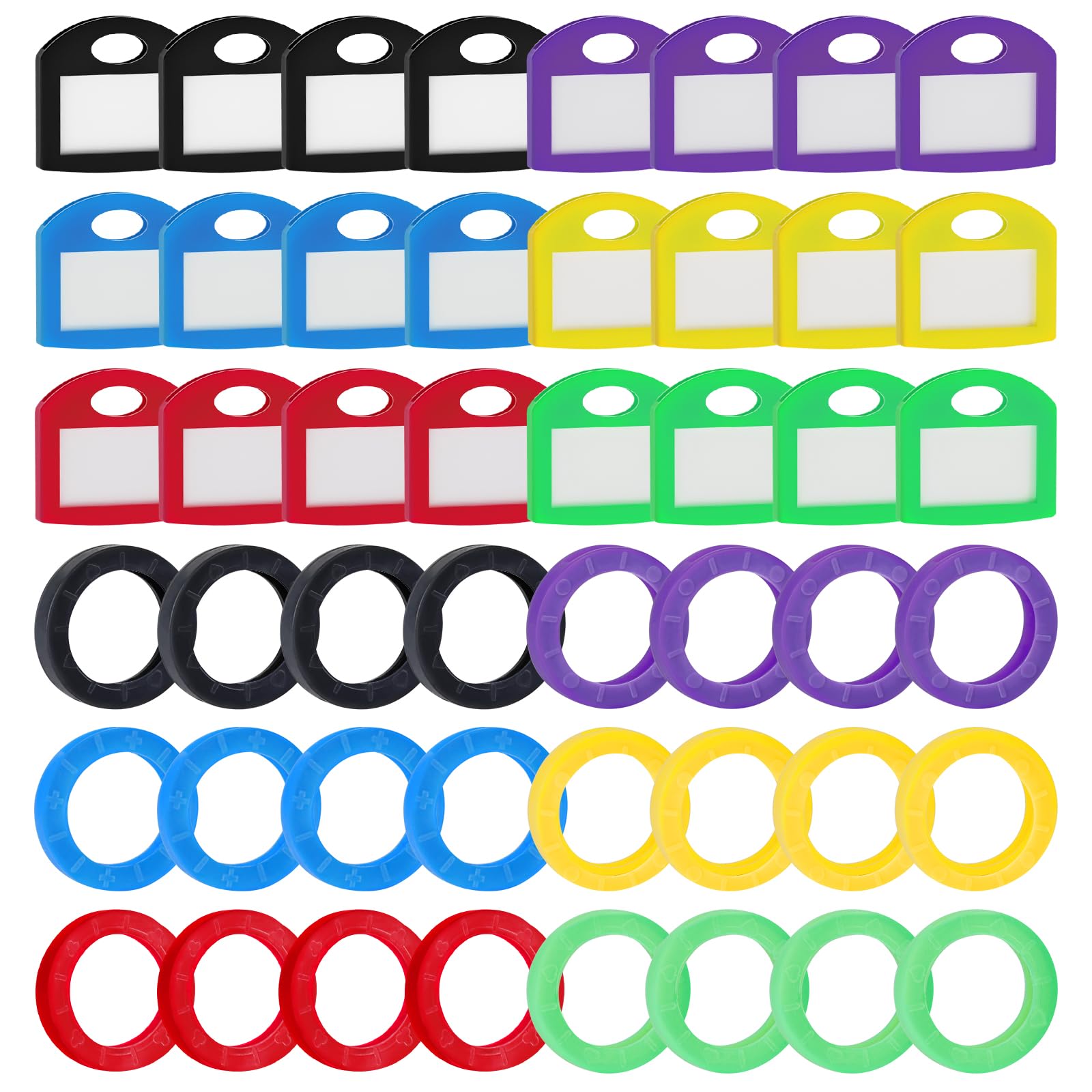 Uniclife 24 Pack Round Key Caps Covers and 24 Pack Key Cap Tags with Blank Paper Labels & Clear Windows Colorful Key Identifiers Protectors for|Office Supplies