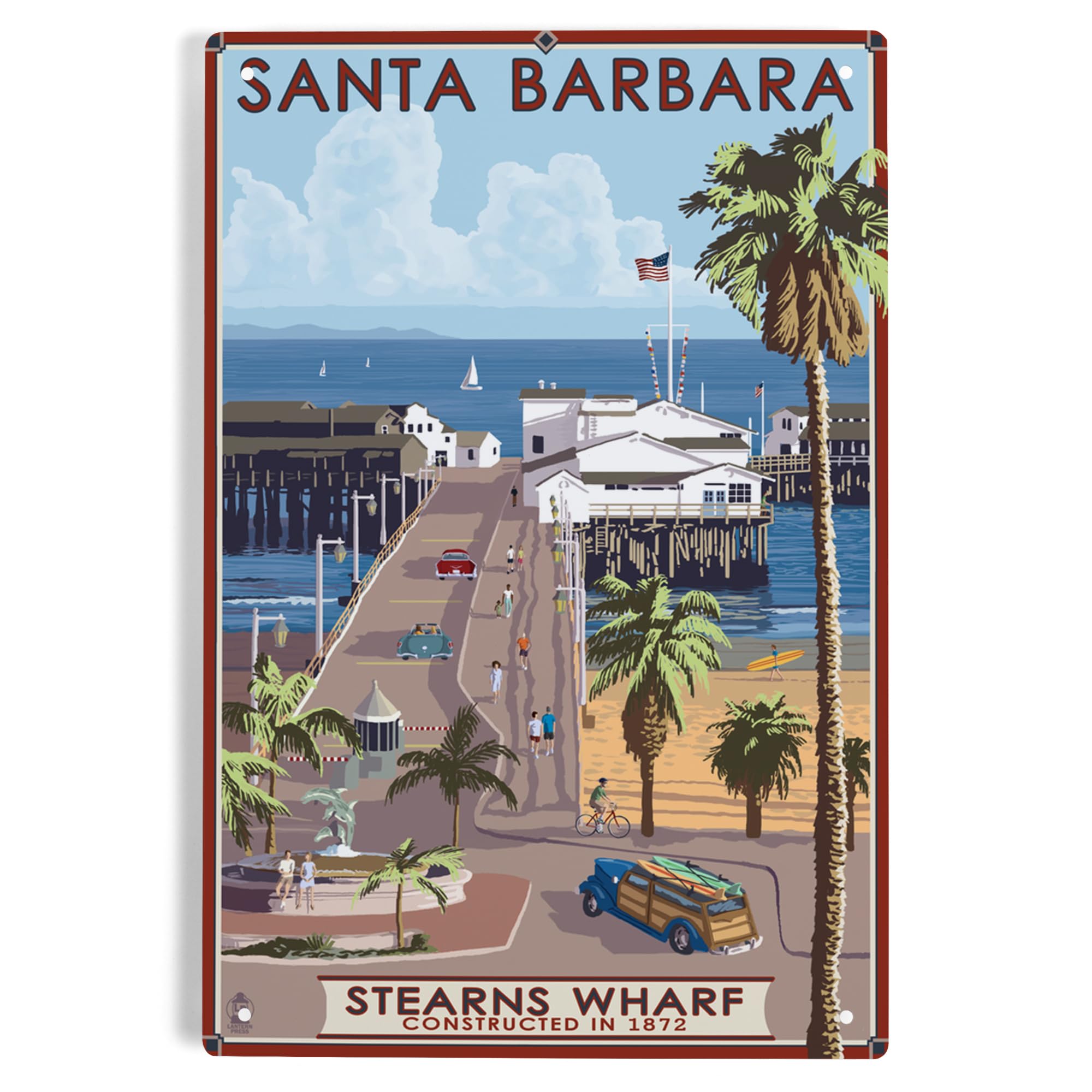Lantern Press 6x9 Inch Metal Sign, Santa Barbara, California, Stern's Wharf|Office Supplies