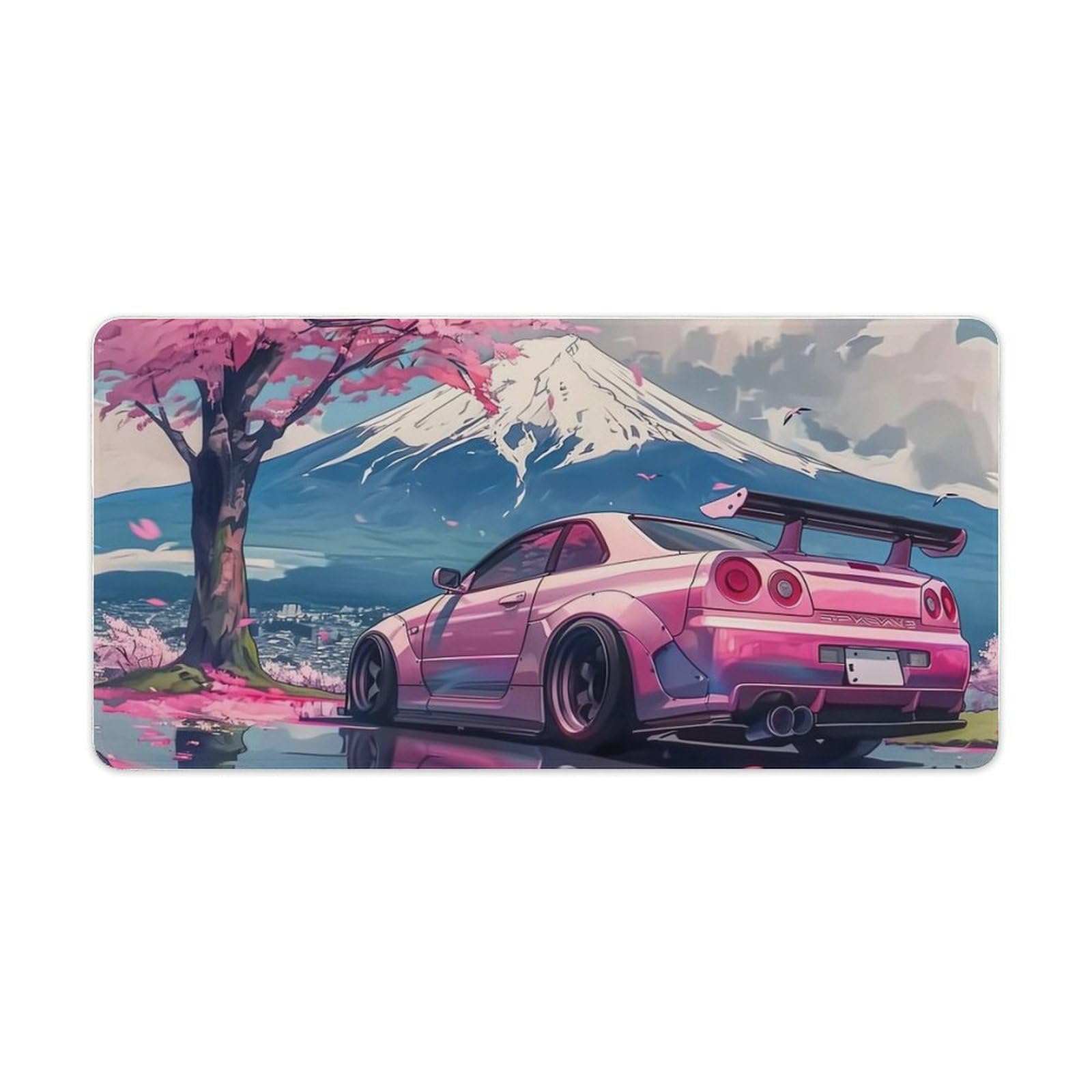 FeoYoed Large Mouse Pad Pink JDM Car R34 Mount Fuji Cherry Blossoms Overlock Edge Rubber Desk Mat Computer Accessories Gaming Office Decor Table Pad|Office Supplies