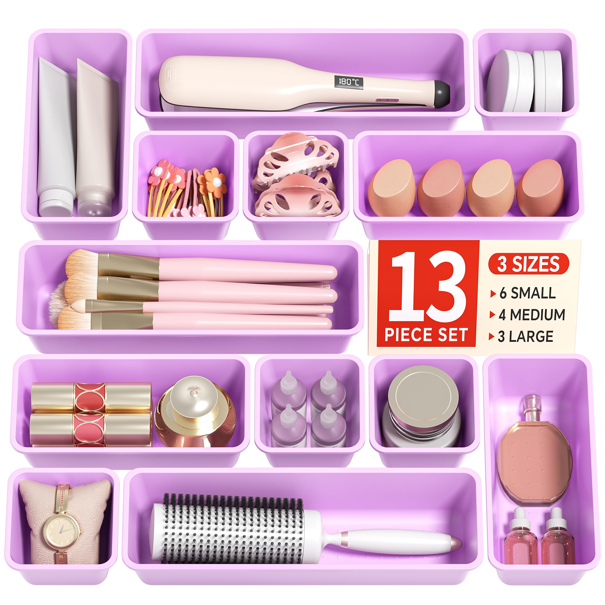 Canfanni 13 Pack Plastic Drawer Organizers Set, 3 Sizes Desk Drawer Organizer Trays for Vanity and Makeup Organizer, Organization and Storage for|Office Supplies