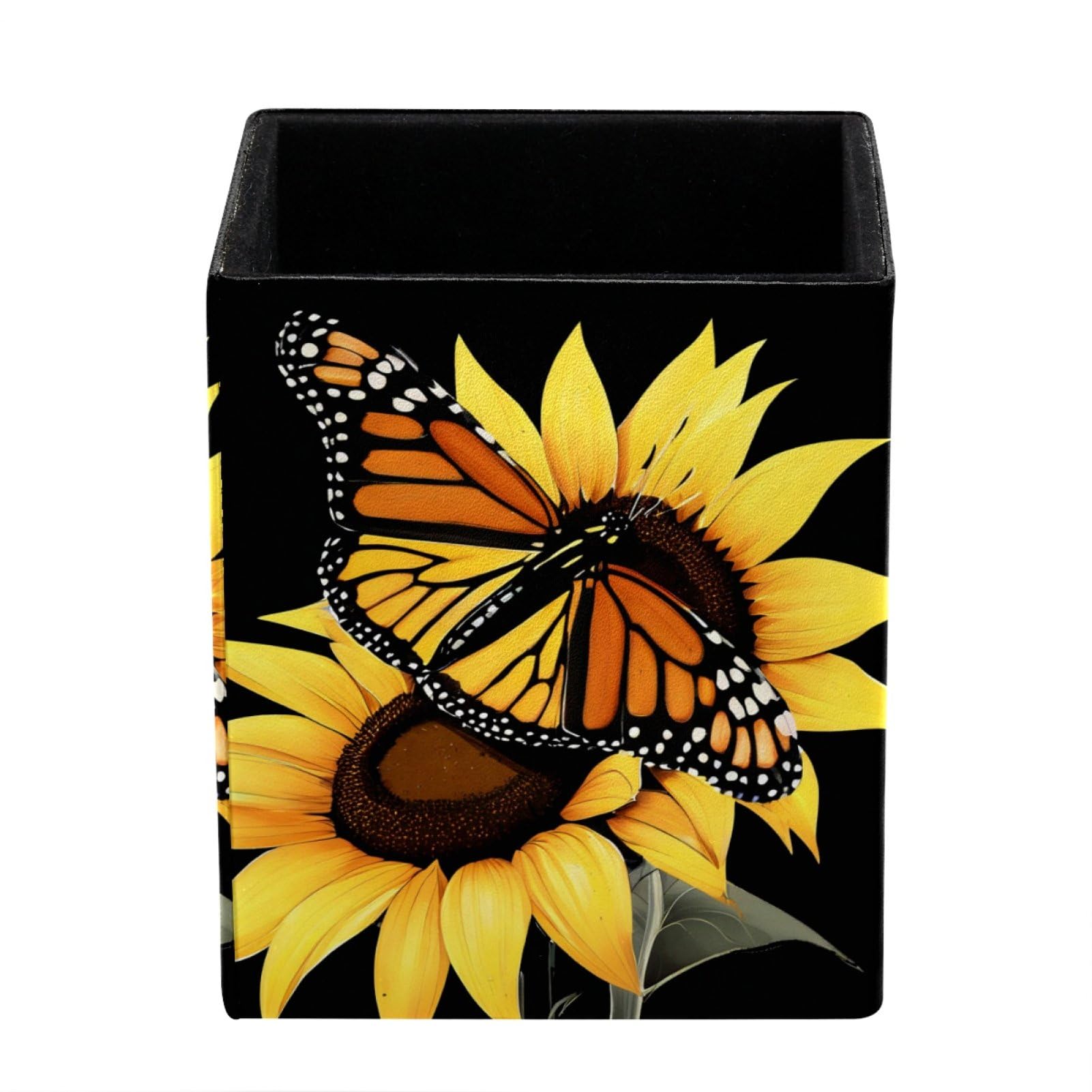 KikandKo Pen Holder for Desk, Butterfly Sunflowers Pencil Holder, Pen Cup Functional Desk Organizer for Office Supplies|Office Supplies