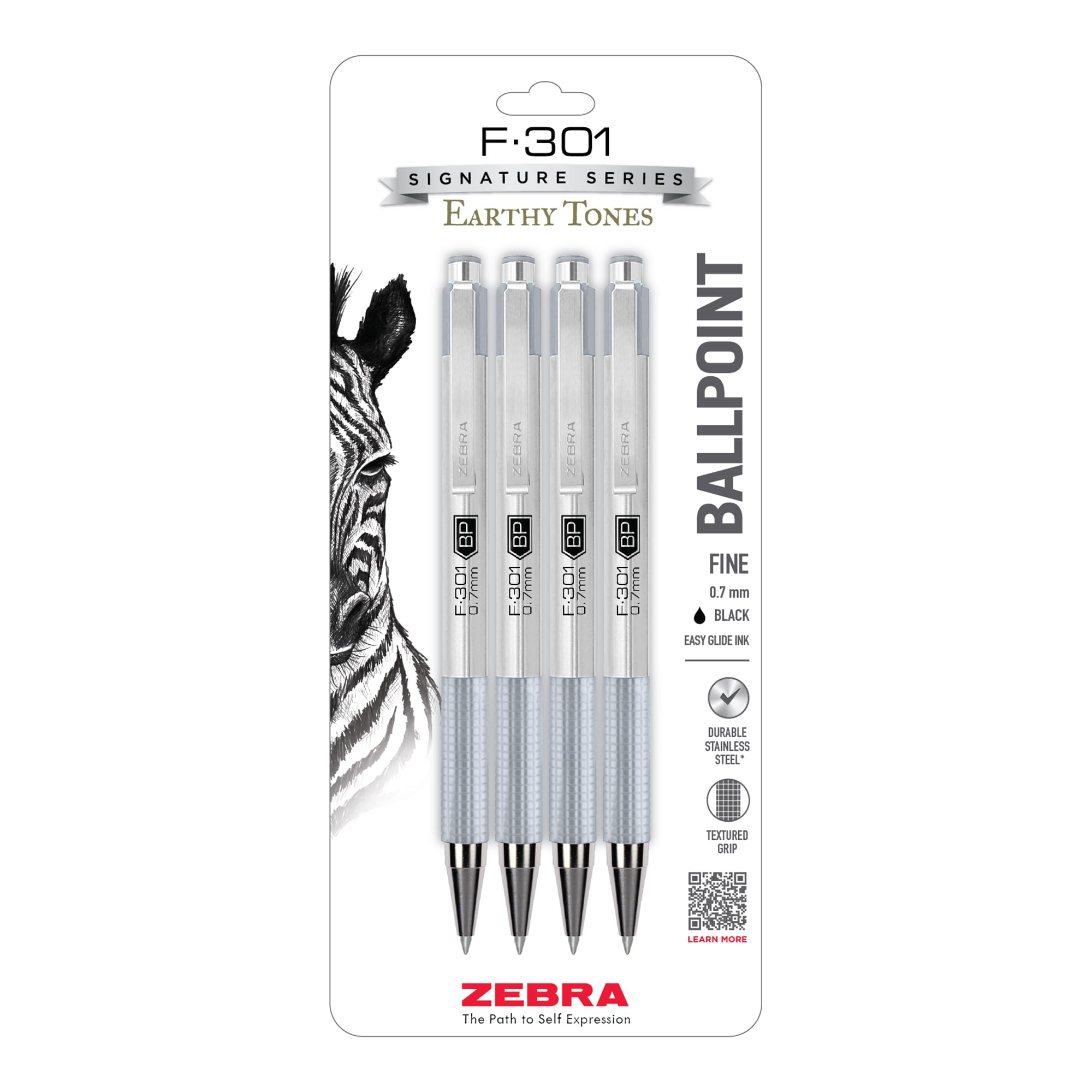 Zebra Pen F-301 Signature Series Retractable Ballpoint Pen, 0.7mm, Black Easy-Glide Ink, Stainless-Steel Barrel, Pewter Earth Tone Accents, Ideal for|Office Supplies
