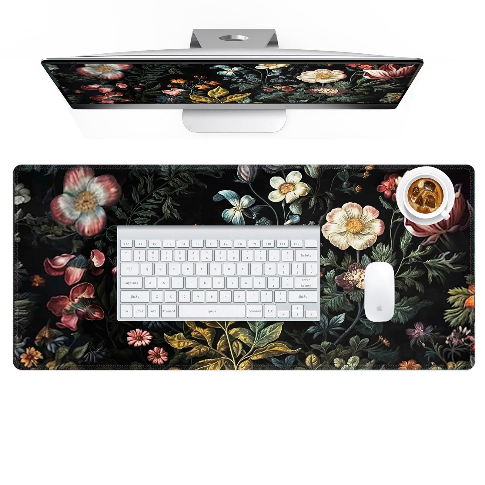 HAOCOO Vintage Aesthetic Floral Plant Desk Mat, Desk Matt for Desktop, Large Mouse Pad Drom Decor, Keyboard Mats for Desk, Computer Desk Cover Mat|Office Supplies