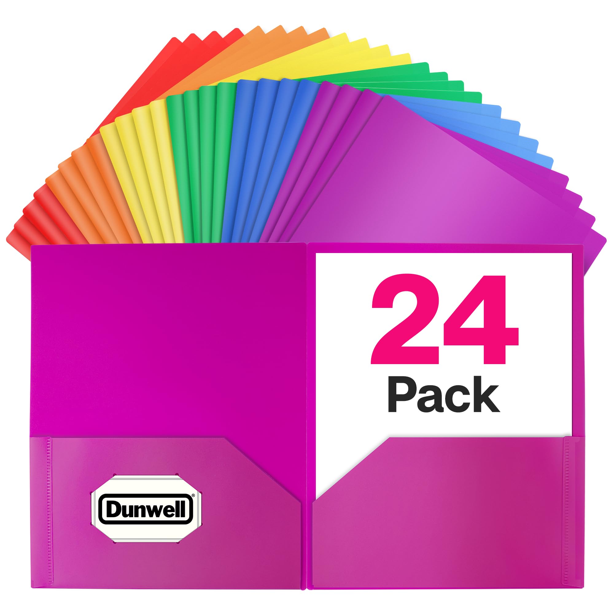 Dunwell Plastic 2-Pocket Folders (24 Pack, Assorted Colors), 8.5x11 Document Folders for School and Office, Heavy Duty Poly, Long Lasting, Includes|Office Supplies