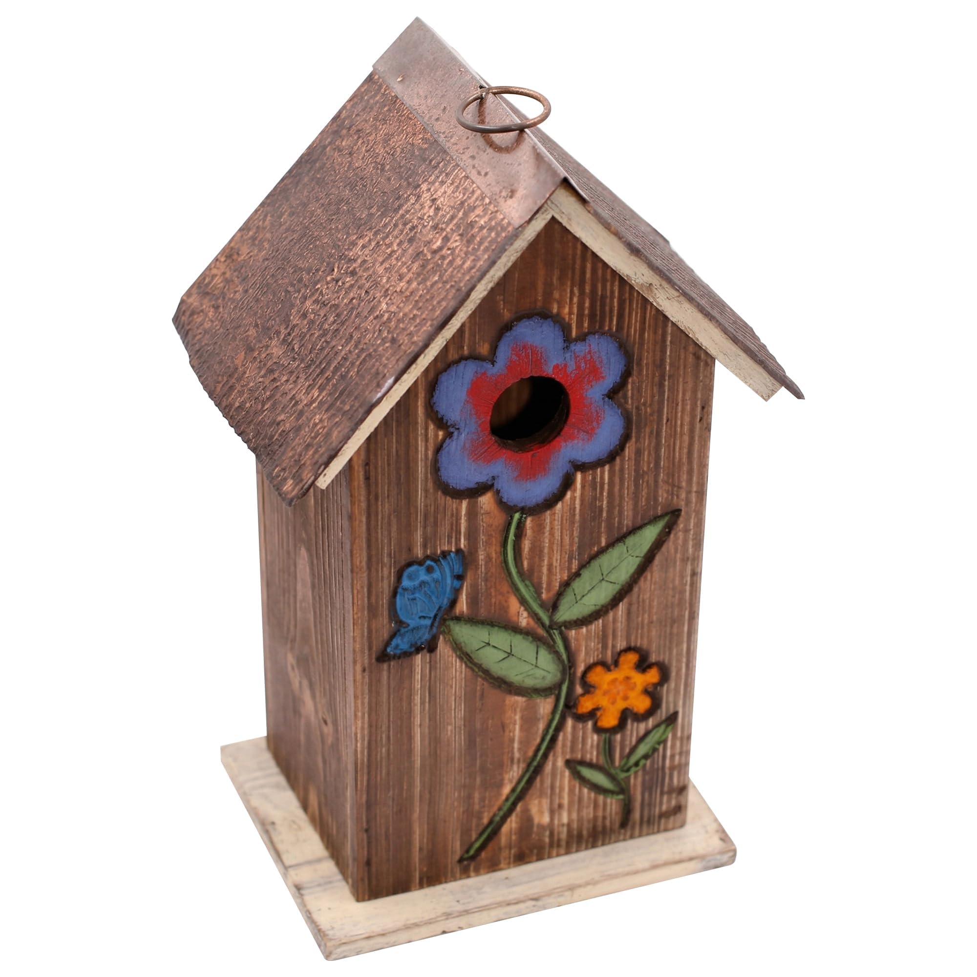Topadorn Wooden Birdhouse, Carved Floral Bird House for Outdoor Yard Garden Porch Patio Decor, Brown Hanging Wild Bird House, Gift for Bird Lovers|Pet Supplies