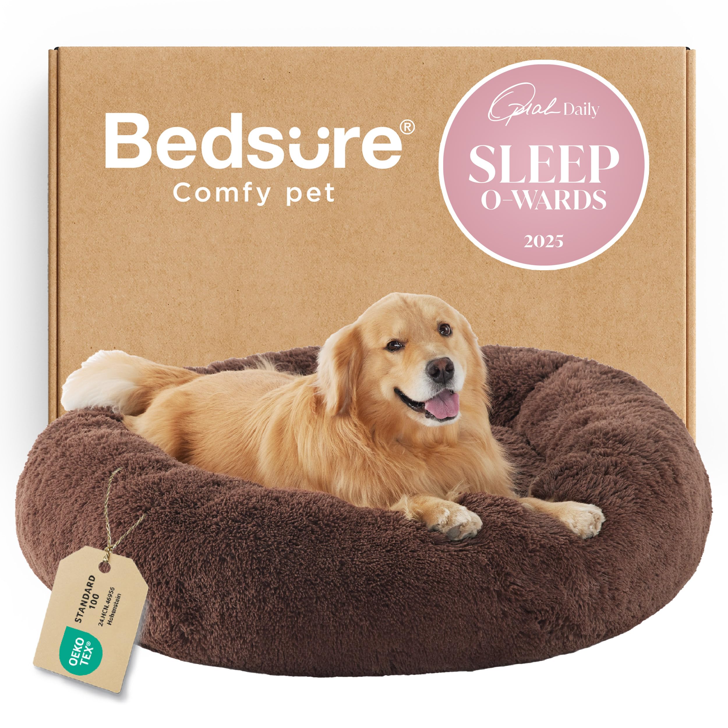 Bedsure Calming Dog Bed for Extra Large Dogs - Donut Washable Large Pet Bed, Anti-Slip Round Fluffy Plush Faux Fur Dog Bed, Fits up to 120 lbs Pets,|Pet Supplies