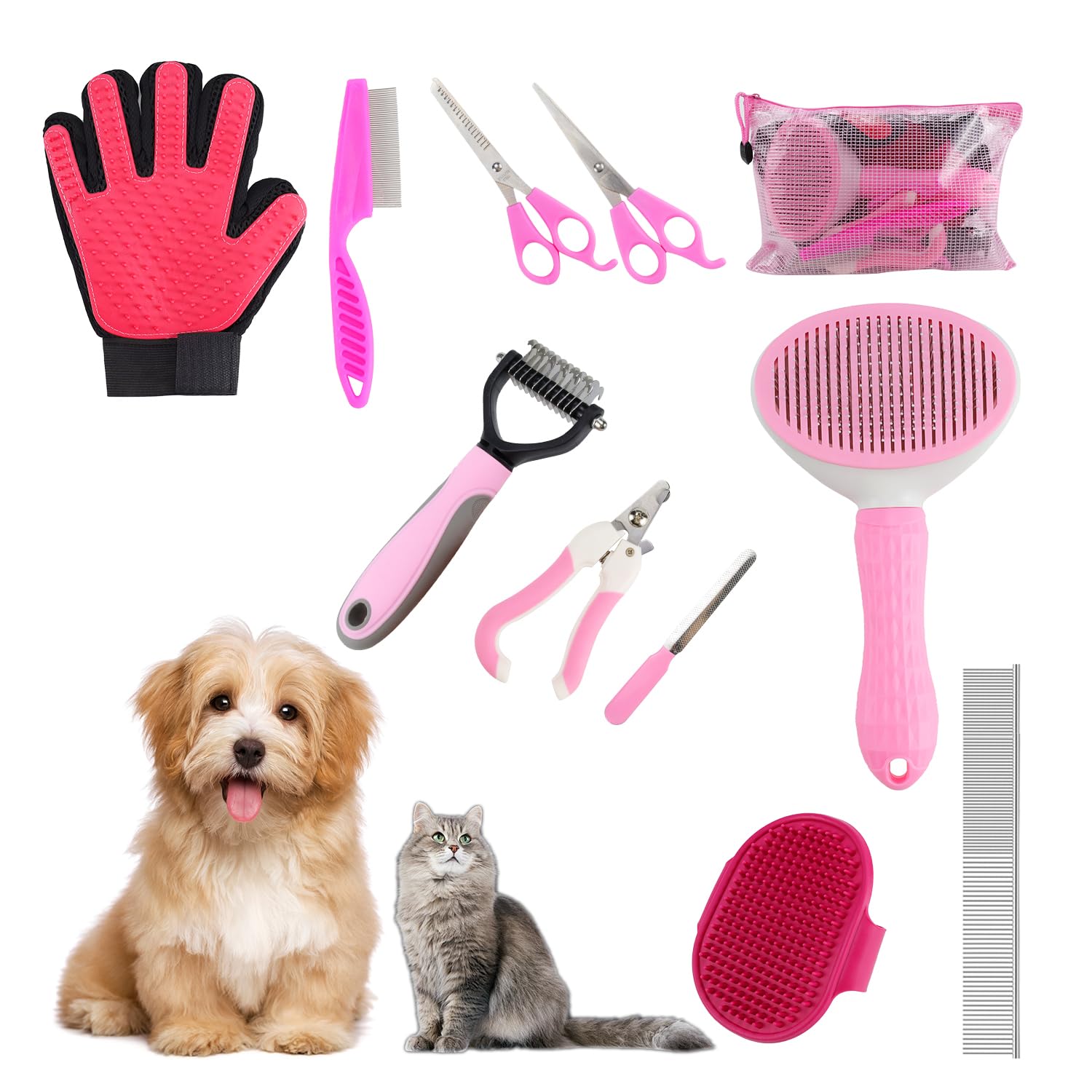 Dog Grooming Brush Shedding Kit, 10 Pcs All In One Pet Self Cleaning Kit with Slicker Brush, Deshedding Tool, Dog Grooming Scissors, Pet Nail Clippers|Pet Supplies