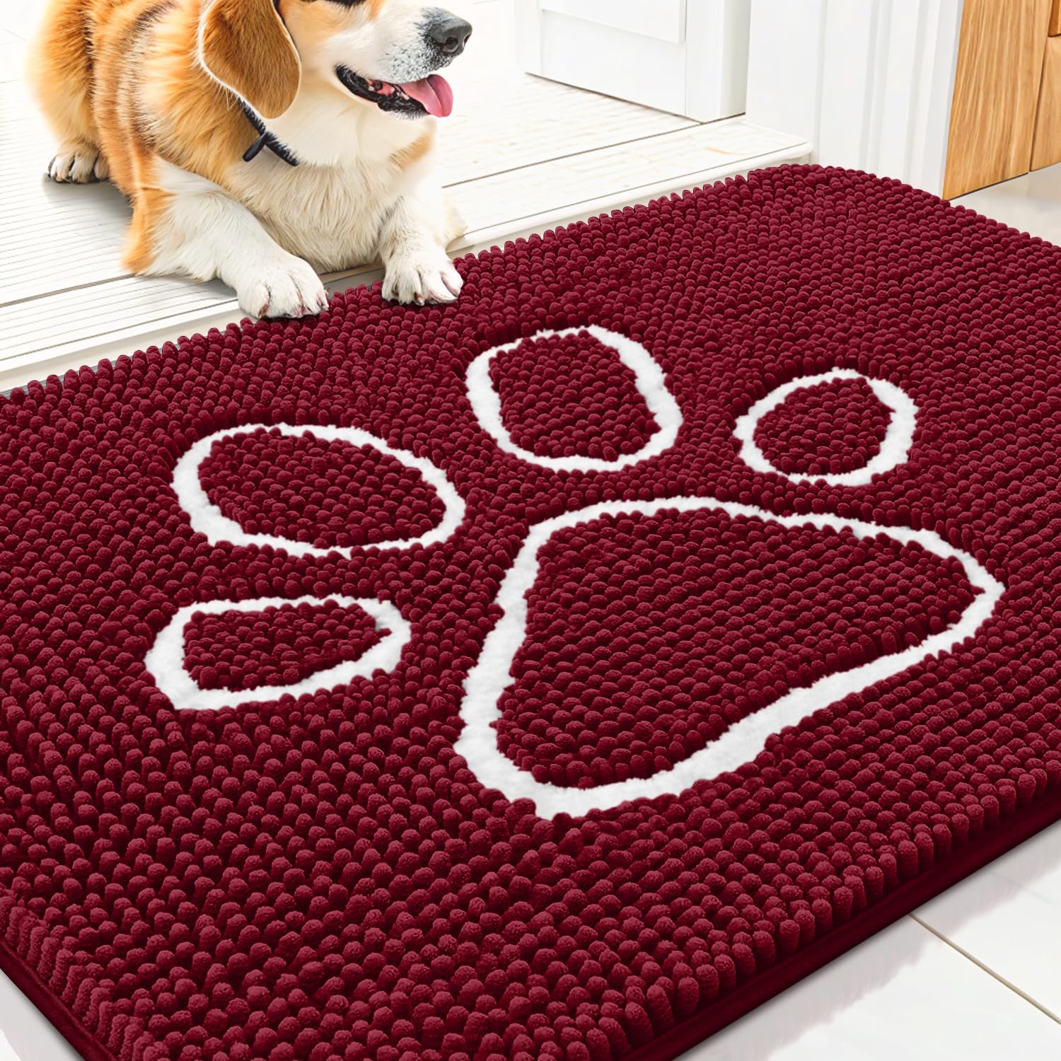 Smiry Dog Door Mat for Muddy Paws, Absorbent Dirt Trapper Non Slip Quick Dry Washable Chenille Mat for Mud Dogs, Entry Rug for Indoor and Outdoor (|Pet Supplies