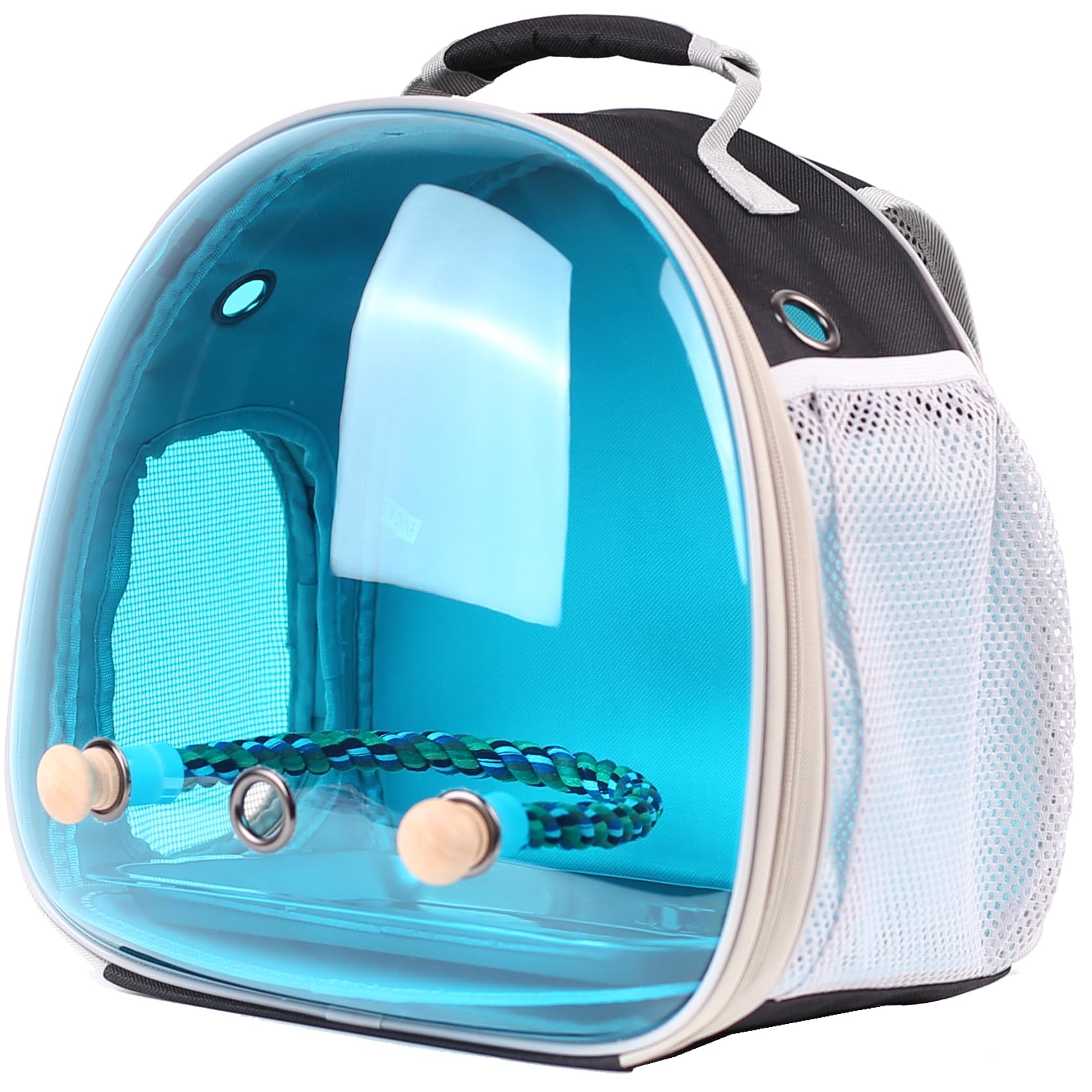 Polarized Tinted Blue Bubble Small Bird Carrier Travel Cage, Portable Bird Carry Backpack with Stainless Steel Tray and Standing Perch for Parakeet|Pet Supplies