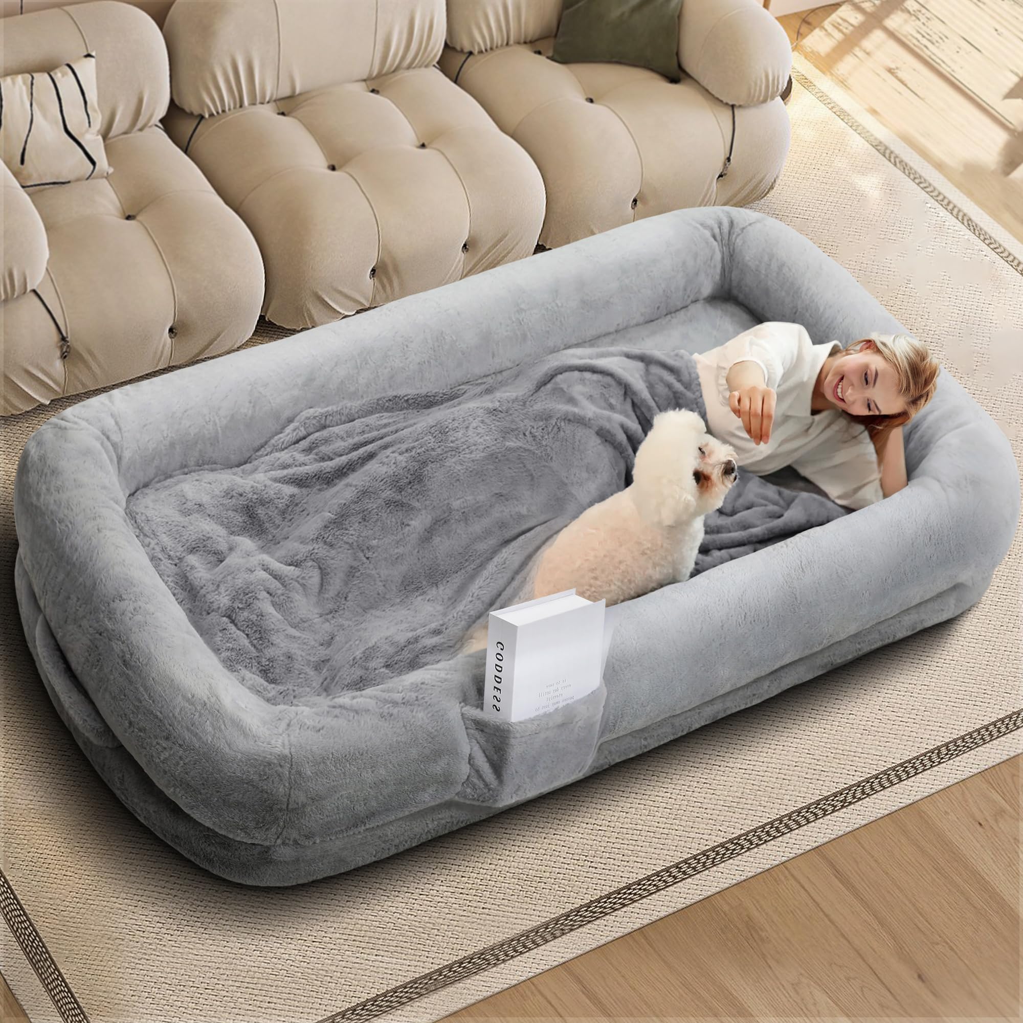 Kromax Human Dog Bed for Adults, 71 x 43 x 10 Large Human Pet Bed, Washable Cover, Comfy Orthopedic Design, Light Grey|Pet Supplies
