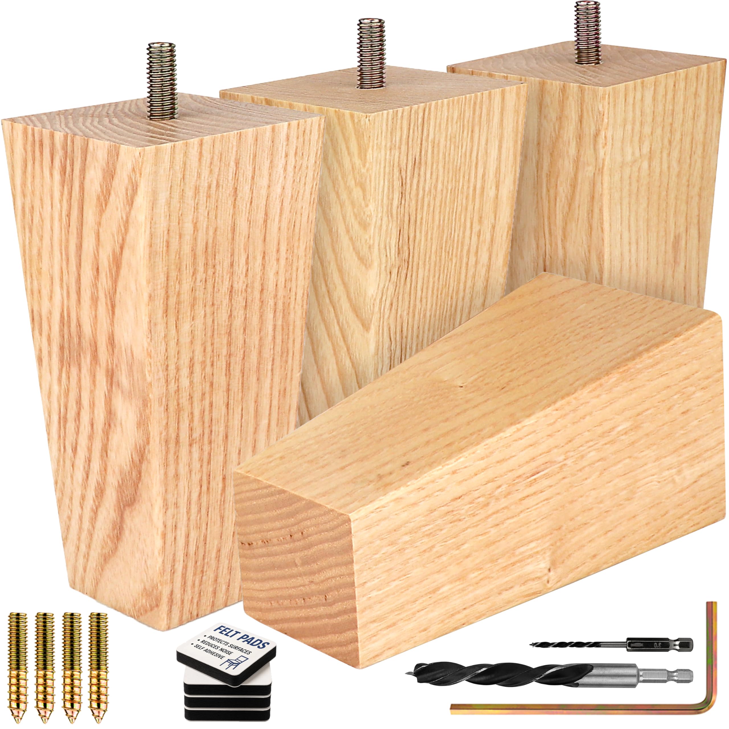 Airy Abode Premium Ash Wood Square Furniture Legs (Full Install Kit) - Pick Your Size and Color