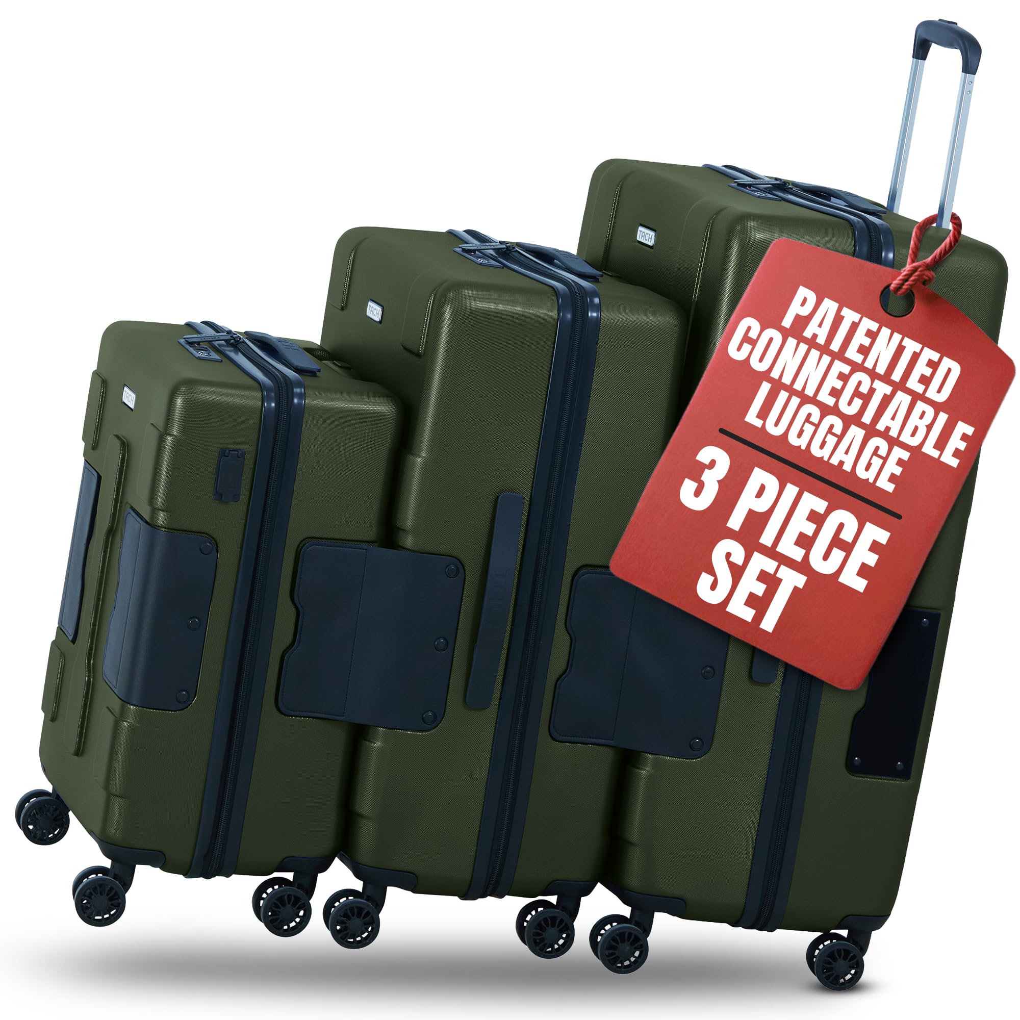 PATENTED CONNECTABLE LUGGAGE SYSTEM – Unlike traditional luggage, TACH is engineered as a patented system that allows multiple bags to function as one. Securely connect and disconnect units in seconds for smoother, stress-free family travel. BUILT FOR REAL-WORLD TRAVEL – Skip carts and porters. Whether you’re crossing parking lots, navigating city streets, hotel lobbies, or train stations, connected bags move as one—and naturally create space for backpacks, totes, and hand-held items. ONE-HAND TOTAL CONTROL – Manage all your luggage with a single hand. Keep your other hand free to call your ride, scan tickets, open doors, or hold your child’s hand—travel feels instantly easier. STRIDE-FRIENDLY PULL STRAP (3+ BAGS CONNECTED) – Engineered to let you walk naturally with full strides while reducing rolling friction. Less drag, smoother movement, and less fatigue over long distances. For use with 3 or more bags. FULLY NESTING STORAGE – Bags nest cleanly together to take up minimal space at home or in storage. Big capacity when you travel, compact footprint when you don’t. The Revolutionary Connectable Luggage System that Makes Travel Super Efficient & Stress-Free! Trying to handle your luggage AND your kids when navigating a busy airport or station is extremely stressful, and if you're a world traveler, you often have the worry of keeping an eye on multiple bags. Imagine if there was a way to make the whole experience so much easier... Introducing the world's First Built-In Connectable Luggage System from TACH: An interconnecting set of high-quality suitcases that enable one person to handle all the luggage without the need for a trolley. Each unit easily attaches in seconds with the quick connecting fasteners, allowing up to 9 connected suitcases to glide along with a simple pull of the strap. This next level luggage design makes travelling as a family, or travelling around the world less stressful and way more efficient. Discover a more enjoyable travel experience Our advanced interconnected luggage includes the following features: 'TACH TUFF' HARDCASES: Roll up to 9 pieces as one unit Connects and disconnects in seconds Durable, high-grade ABS/PC composite Creates convenient storage for hand held items Water bottle holder TSA locks High-strength ball bearing spinner wheels Extra soft Comfort grip handles Adjustable Pulling strap Dimensions and weights 28” TACH TUFF - Case - 28” x 18.5” x 12 Overall - 30.5” x 19.5” x 12”10.5 lbs. 24” TACH TUFF - Case-24” x 16.5” x 10.5” Overall - 29.5” x 17.5” x 10.5”8.5 lbs. 20” TACH TUFF - Case -20” x 14" x 9” Overall – 22.7” x 14.3” x 9.2"6.5lbs