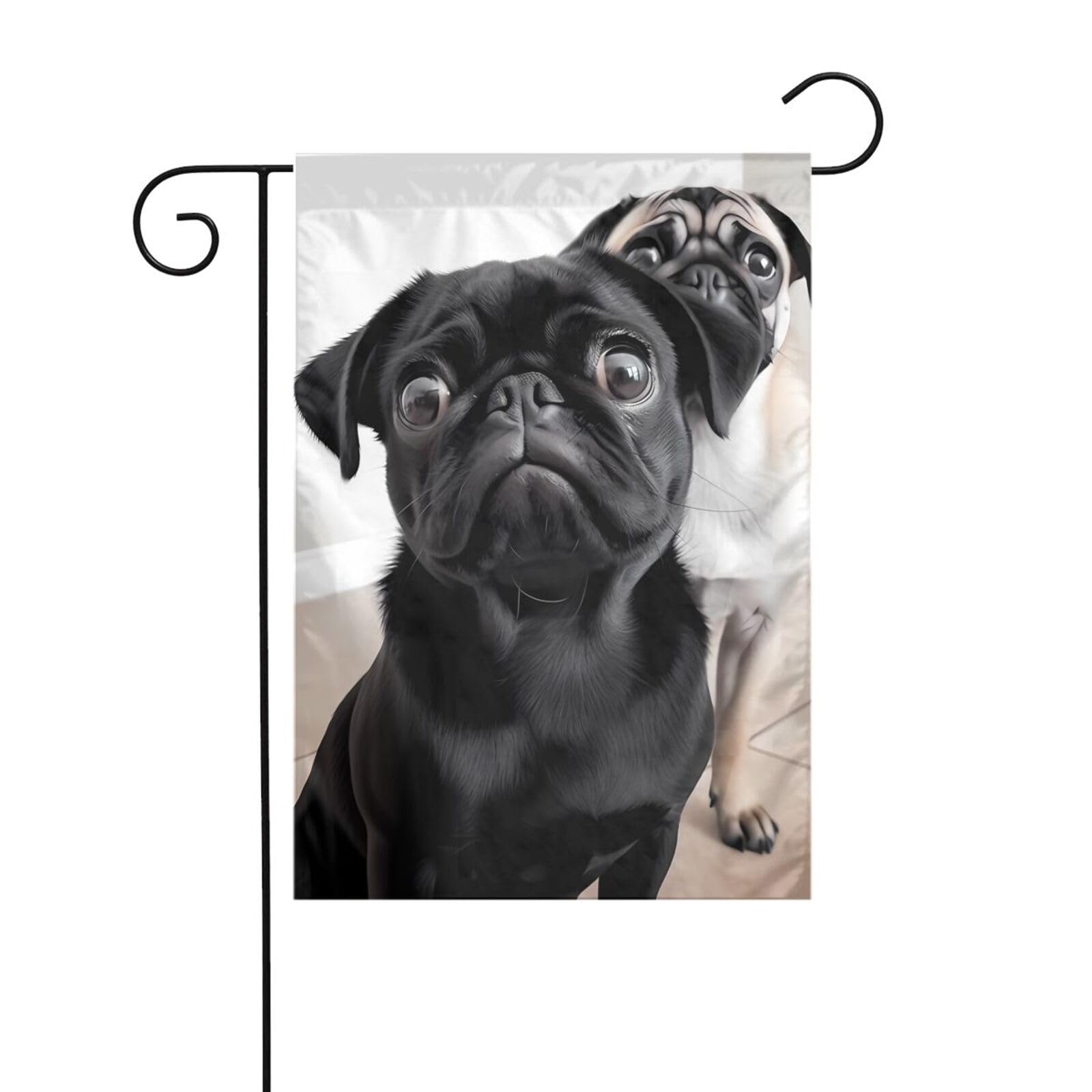 High-Quality Fabric:Our Cute Black Pug Dog Summer Garden Flags Are Made Of Polyester Fabric,The Fabric Is Thickthe Fabric Is Thick,Wear-Resistant,Wrinkle-Resistant,And Is Strong And Durable,Not Easy To Fade,Easy To Disassemble,For All Seasons,They Can Add A Splash Of Color To Your Garden Or Lawn. Garden Flag Sizes:This Small Yard Flags Size Is 12 X 18 Inches,Easy To Install,That Can Be Used With Any Standard Garden Flag Stand.Make Stunning Decorative Statements For Your Backyard,Lawn Or Garden.(Note: Garden Flag Only, Flag Stand Not Included) Double-Sided Printing:Yard Lawn Flag Features Graphics On Both Sides, The Image Is Vibrant And Vivid On Both Sides, Yard Flags Feature High-Strength Double Stitching That Is Eco-Friendly And Odorless So You Can Use Them Again. You Can Easily Hang Our Outdoor Flags From Standard Wire Flagpoles, Flagpole Stands, Brackets, Poles And Hangers. Home Decoration:Get Ready For Summer With Our Welcoming Garden Flags. Beautifully Detailed Decorative Flag Will Maintain A Timeless Look Of Your Home,As Well As Offering A Welcome Stop To Your Visitors In A Distinctive Way! It Will Definitely Turn Heads Of Your Neighbors And Visitors,And Create A Wonderful Look For Your Garden, Yard,Balcony And Patio Area. Perfect For Any Occasion:Small Garden Flags Is A High-Quality Flag That Can Be Used As A Creative Gift,A Great Gift For Friends, Parents,Or Can Be Displayed On Your Home Or Garden,Perfect For You To Hang On Your Yard, Lawn,Garden,Patio,Decks,Porches,Balconies,Etc. Welcome Guests And Create A Charming Accent To Any Balcony, Backyard,Lawn Or Garden. This Cute Black Pug Dog Funny Garden Flag Made Of Machine Washable Spun Polyester,Exquisite Craftsmanship And High-Quality Materials.Uv And Fade Resistant Can Keep For Long Time. All Flags With A Sleeve At Top For Use With Any Standard Flag Pole Or Stand.Does Not Include Flag Stand, Mainly Used In Patios, Gardens, Flower Pots, Etc., It Fits Any Patio Or Balcony And Makes A Charming Decoration For Any Backyard Or Lawn.Care Instructions: Garden Flags For Outside Hand Wash In Warm Water Or In Washing Machine On Gentle Cycle, But Not Bleach.