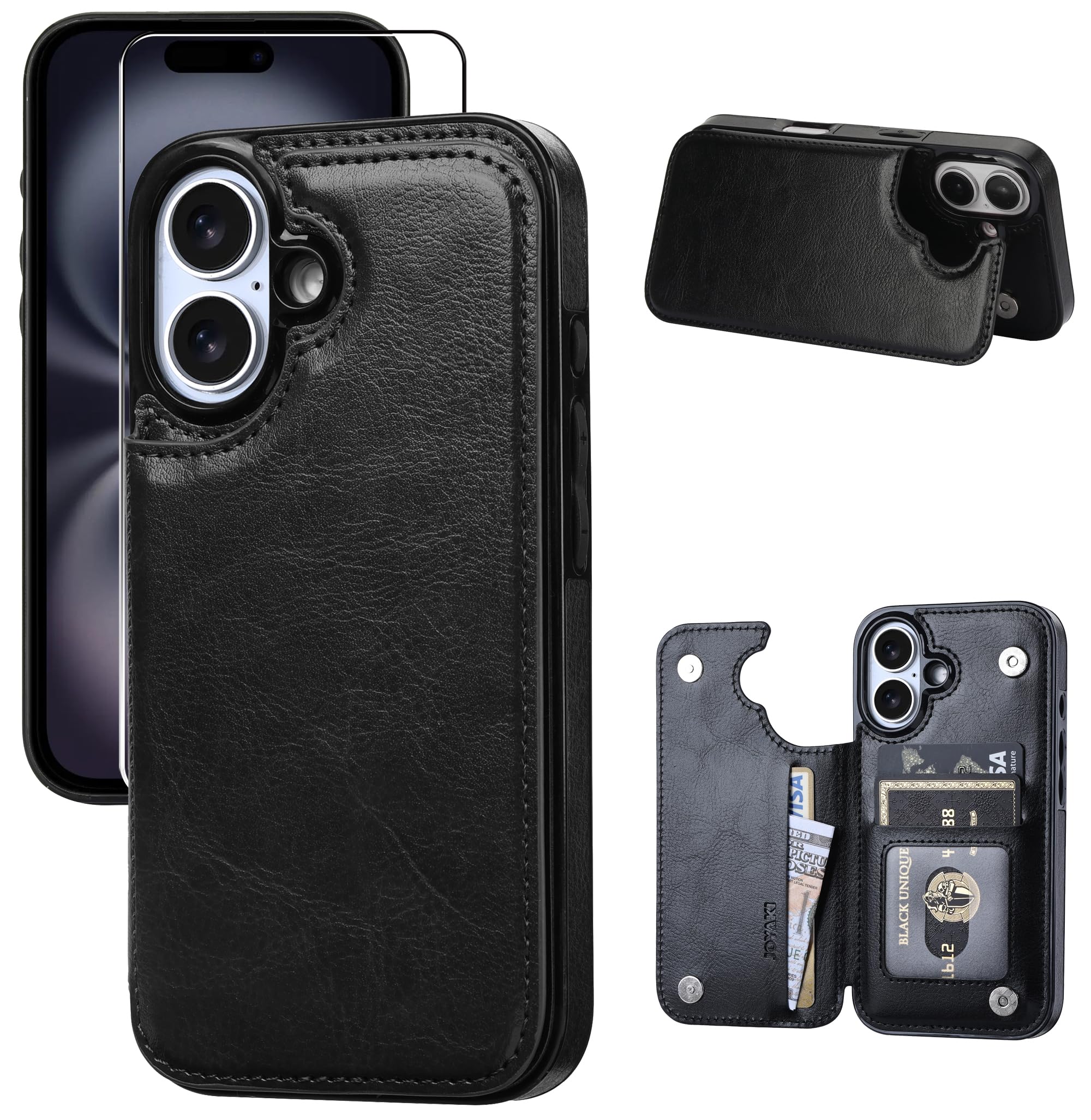 1. Genuine handcrafted, high quality durable material for the service life, interior case section securely holds your iphone 16 (6.1") in place. 2. Unique wallet case: 3 in 1 combination for flip case style, top-grade hand feeling. 3 separate slots for your License ID and Credit cards, as well as a pocket for cash. 4.Magnetic buttons: keep your case slim and stylish, keep your cash and cards security. 5. Slim profile provides a sleek look and also convert our iPhone 16 (6.1") for hands-free viewing. 6. More protective: 1 piece of free tempered glass provide more protective to your phone screens from daily wear and tear. Abandon your bulky wallet Case. JOYAKI wallet Case compated with iPhone 16, a 3 in 1 ultra-compact phone case, designed with card holder! This PU leather card slot wallet phone case for iphone 16(6.1") is a new design of a wallet case, she has the following features 1. Take your essential credit cards, debit cards, business cards, driver's license and IDs security 2. Unique 3 in 1 combination wallet case design( phone holder, phone case and wallet). 3. Dual layer structure, with hybrid PU leather and soft TPU bumper. 4. Convenient slot to store your card or cash. 5. Two magnetic clasp snaps firmly to keep cards and cash safety. 6. Anti-scratch & Shockproof: back protect from drops and scratches with built-in protection. Package: 1 wallet case compatible with iphone 16 (6.1") 1 Temperatured glass 1 pair wet and dry wipes