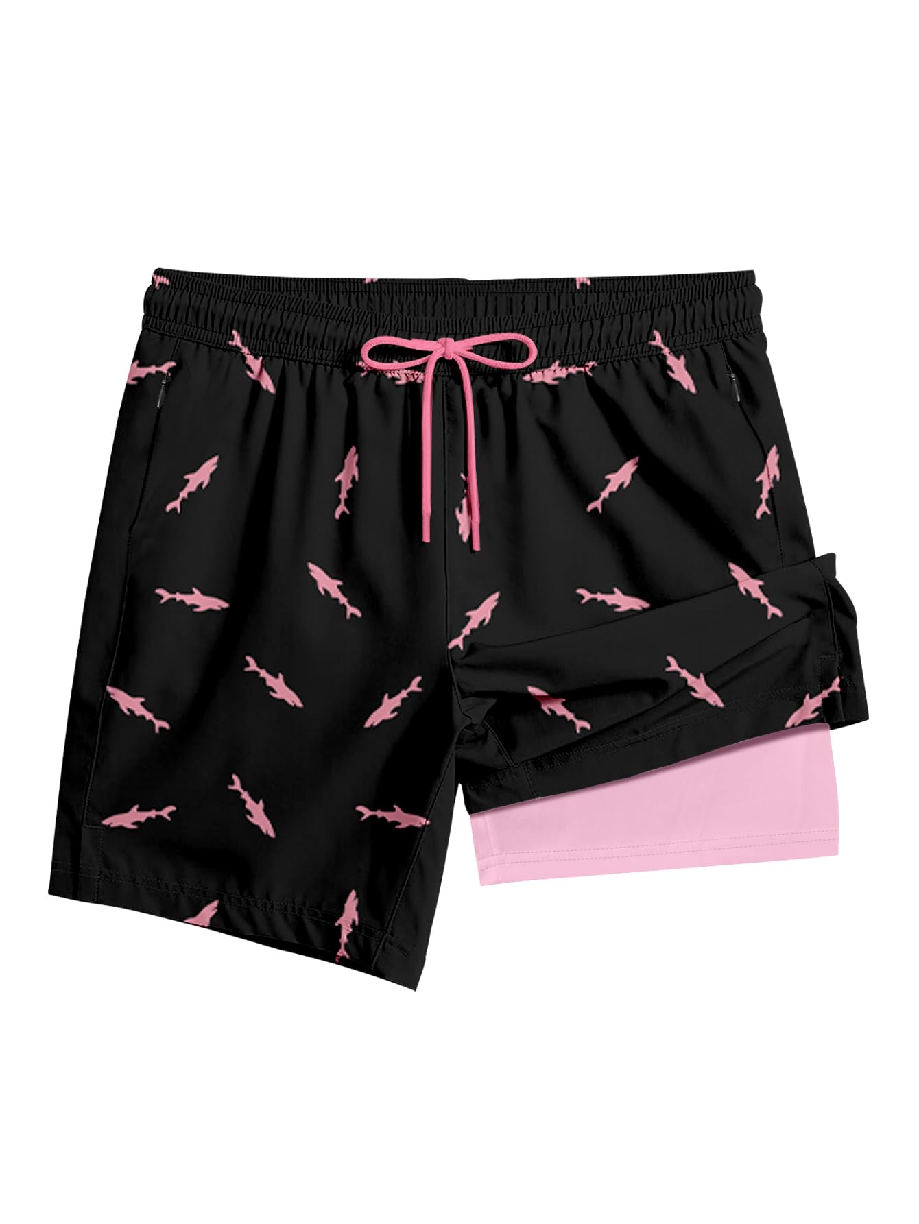 TENGINE Men's Swim Trunk 5" with Compression Liner 5 Inch Quick Dry Board Shorts Zipper Pocket|Clothing