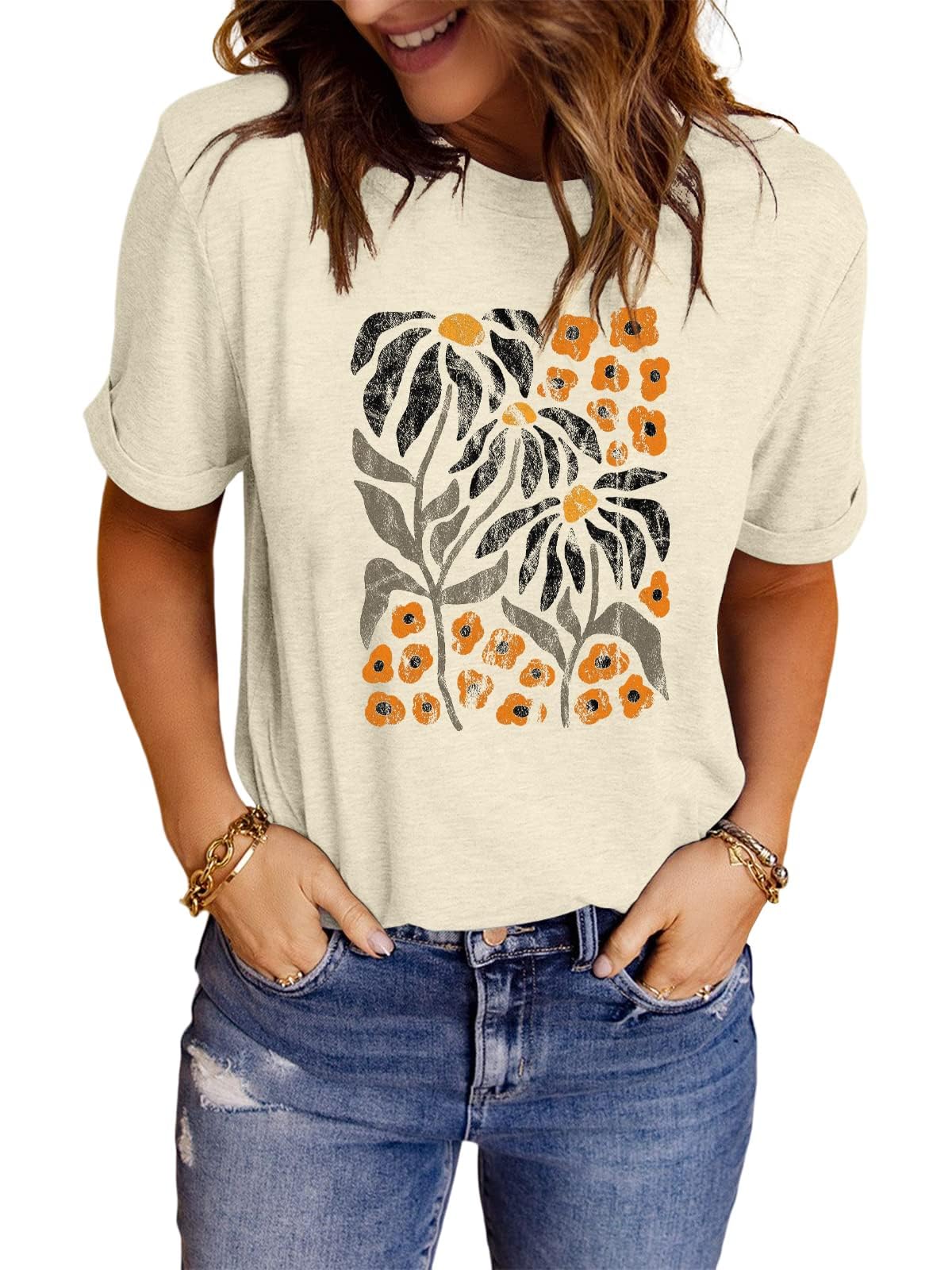 LINDOCITA Womens Graphic Tee Shirts Trendy Casual Summer Loose Fit Short Sleeve Tshirts for Women|Clothing