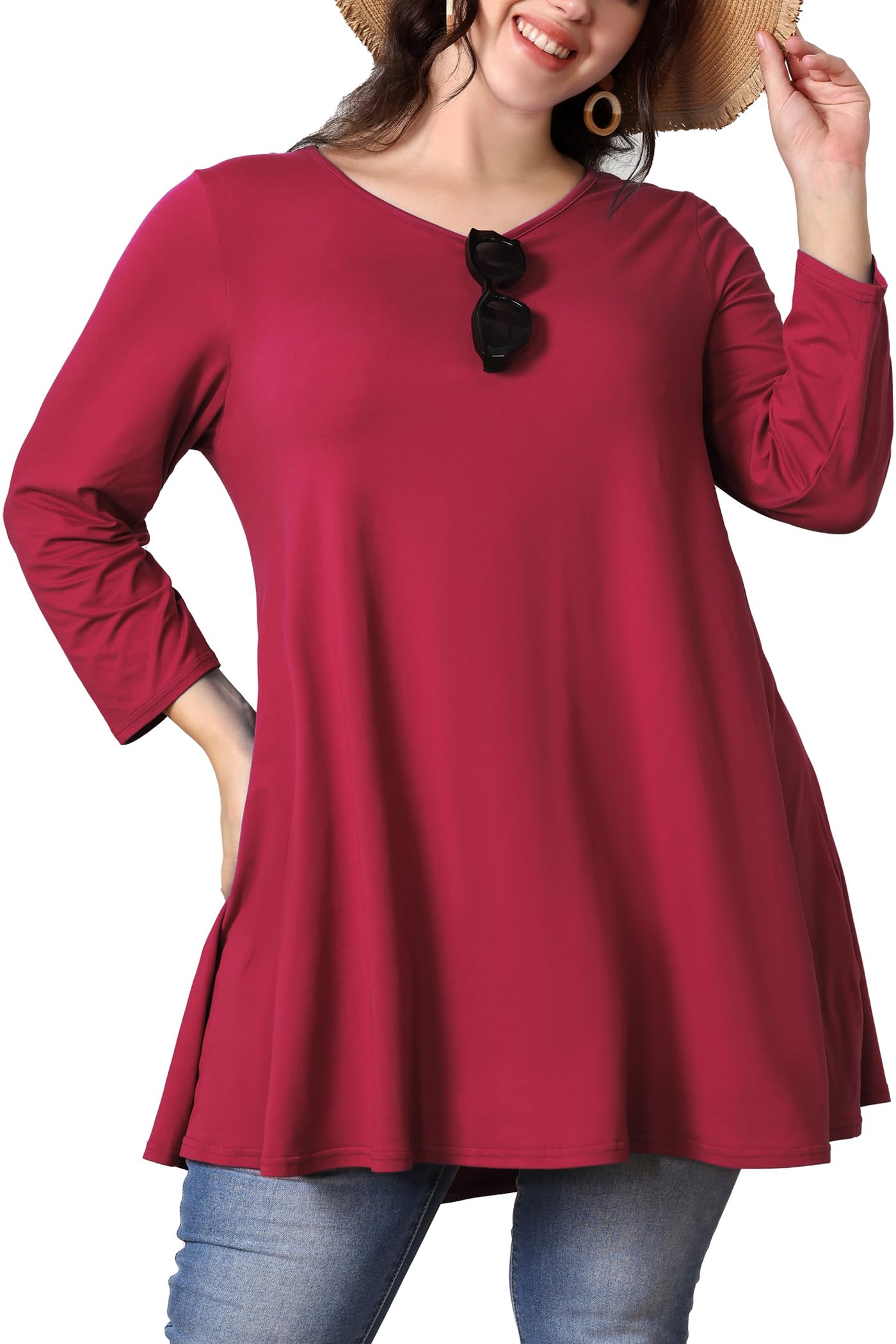 Loveliin Plus Size Tunic Tops for Women 3/4 Sleeve Loose Fit Swing Tunics Dressy Casual Floral Top to Wear with Leggings|Clothing