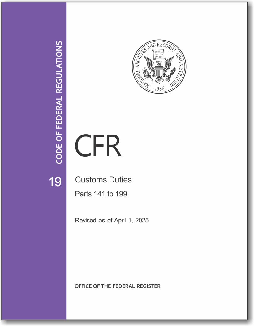 CFR 19 Customs Duties Parts 141 to 199 - Code of Federal Regulation Chapter 2 - Revised April 2025|Books