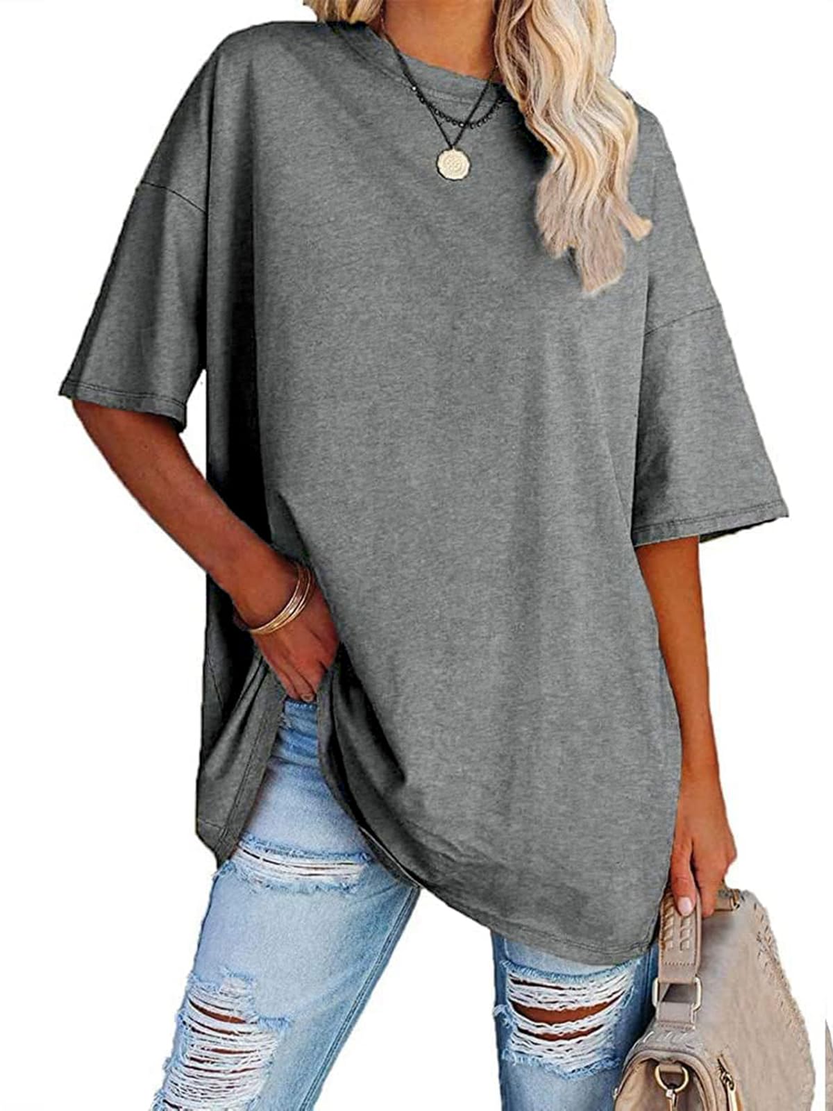 Fisoew Women's Oversized T Shirts Tees Half Sleeve Crew Neck Cotton Tunic Tops|Clothing