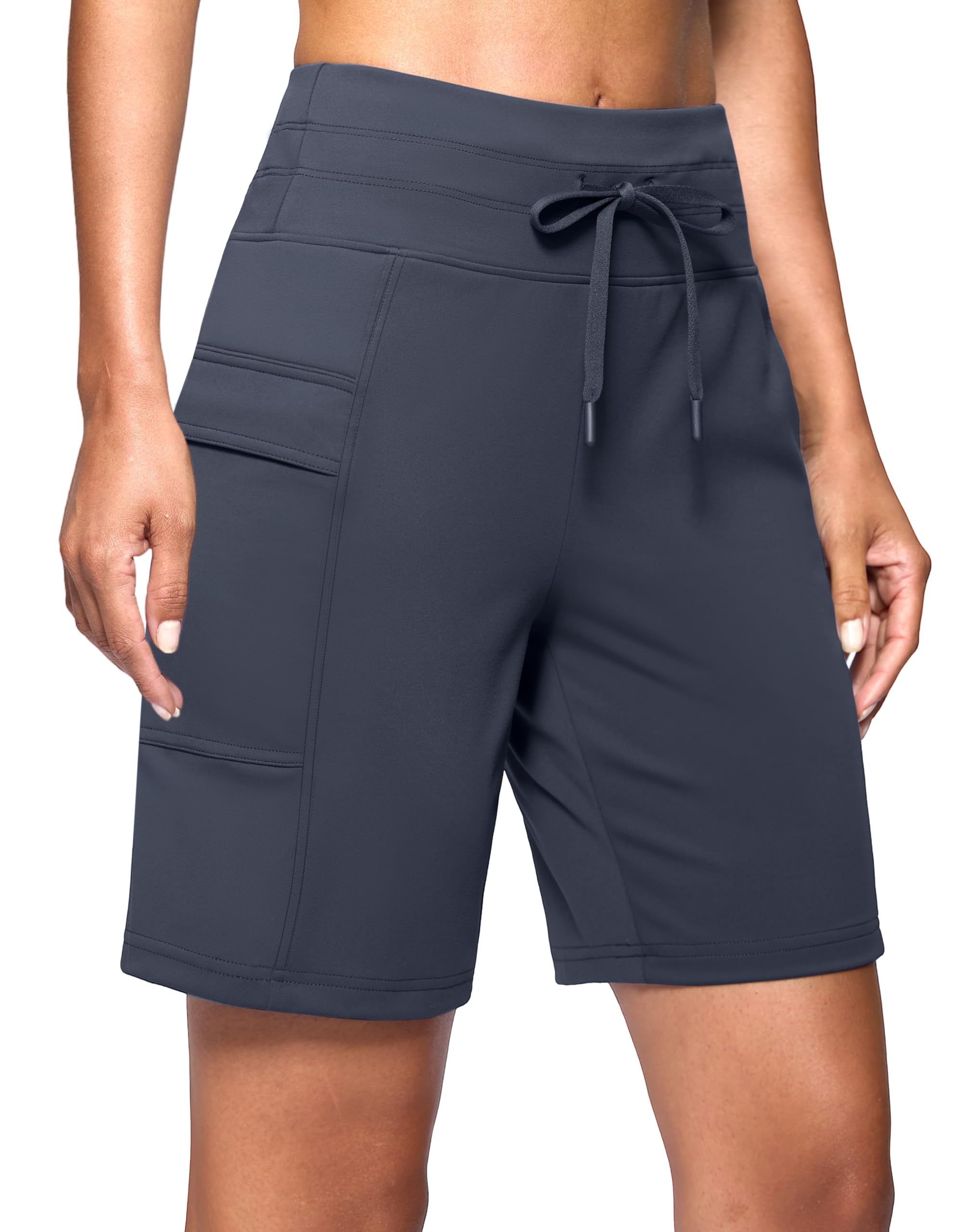 Women's 7" Athletic Hiking Long Shorts with Side Pockets High Waisted Stretchy Bermuda Shorts for Women Workout Casual|Clothing