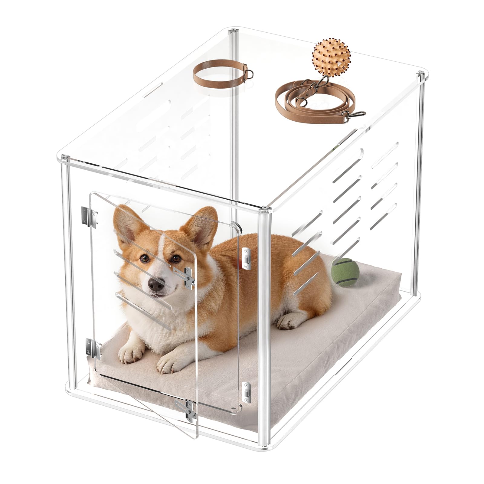 Sumerflos Acrylic Dog Crate Furniture - Clear Dog Kennel End Table for Small & Medium Dogs Up to 45lb Indoor Lockable Heavy-Duty Ventilated, 29.92" L|Pet Supplies