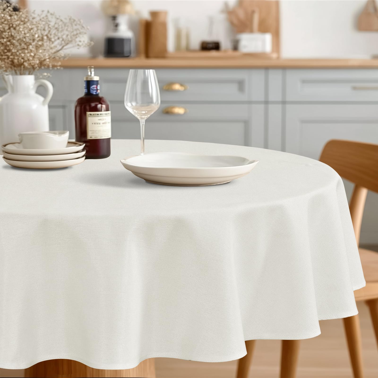 JIUZHEN Round Table Cloth Faux Linen Farmhouse Tablecloth Wrinkle & Stain Resistant Table Cover for Kitchen Dining, Holiday Party Dinner, White, 70|Home & Garden
