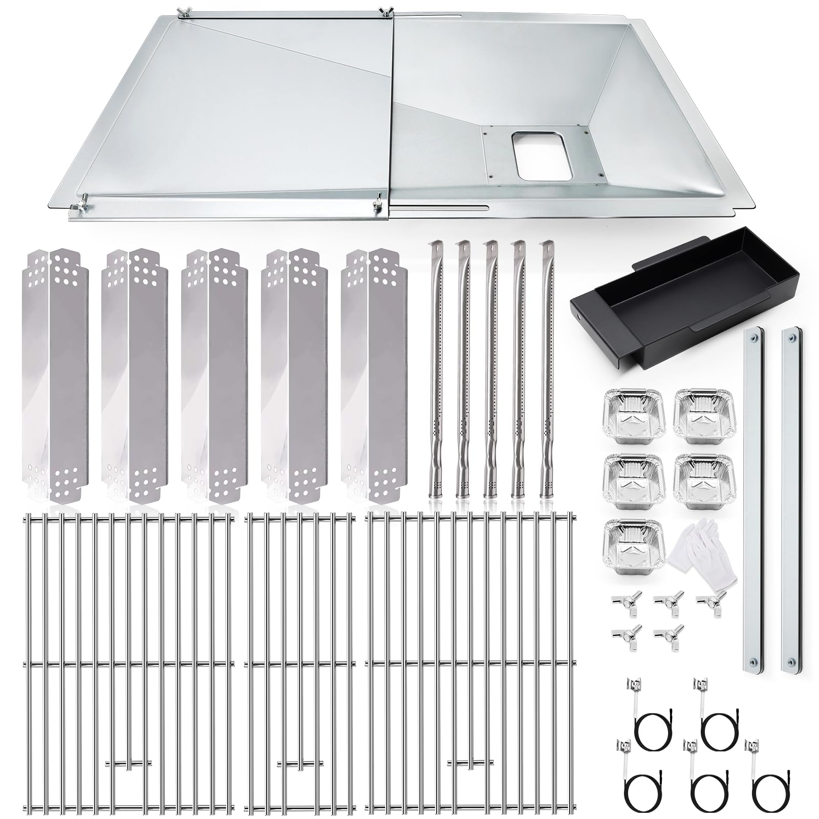 Hiorucet Grill Grease Tray Replacement Parts for Nexgrill 5 Burner 720-0882A, Gas Grill Drip Pan, Cooking Grid Grates, Heat Plates, Burner Tube and|Lawn & Garden