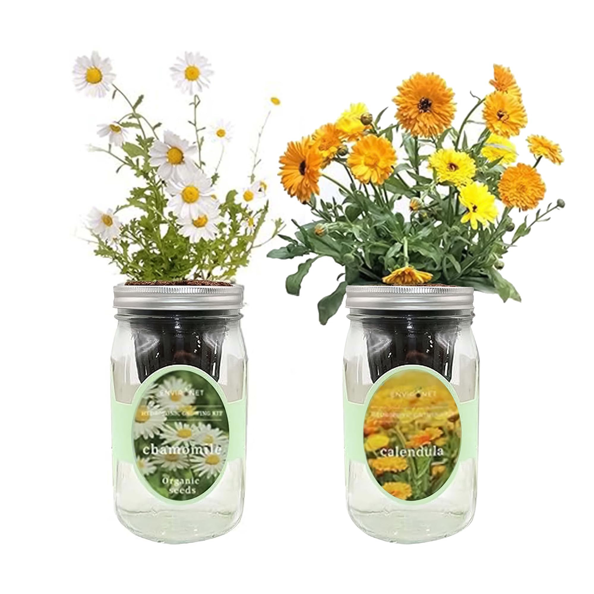 Environet 2-Pack Hydroponic Mason Jar Herb Garden Kit, Indoor Herb Garden Self-Watering Starter Kit, New Christmas Gift for Mom (Calendula,Chamomile)|Lawn & Garden