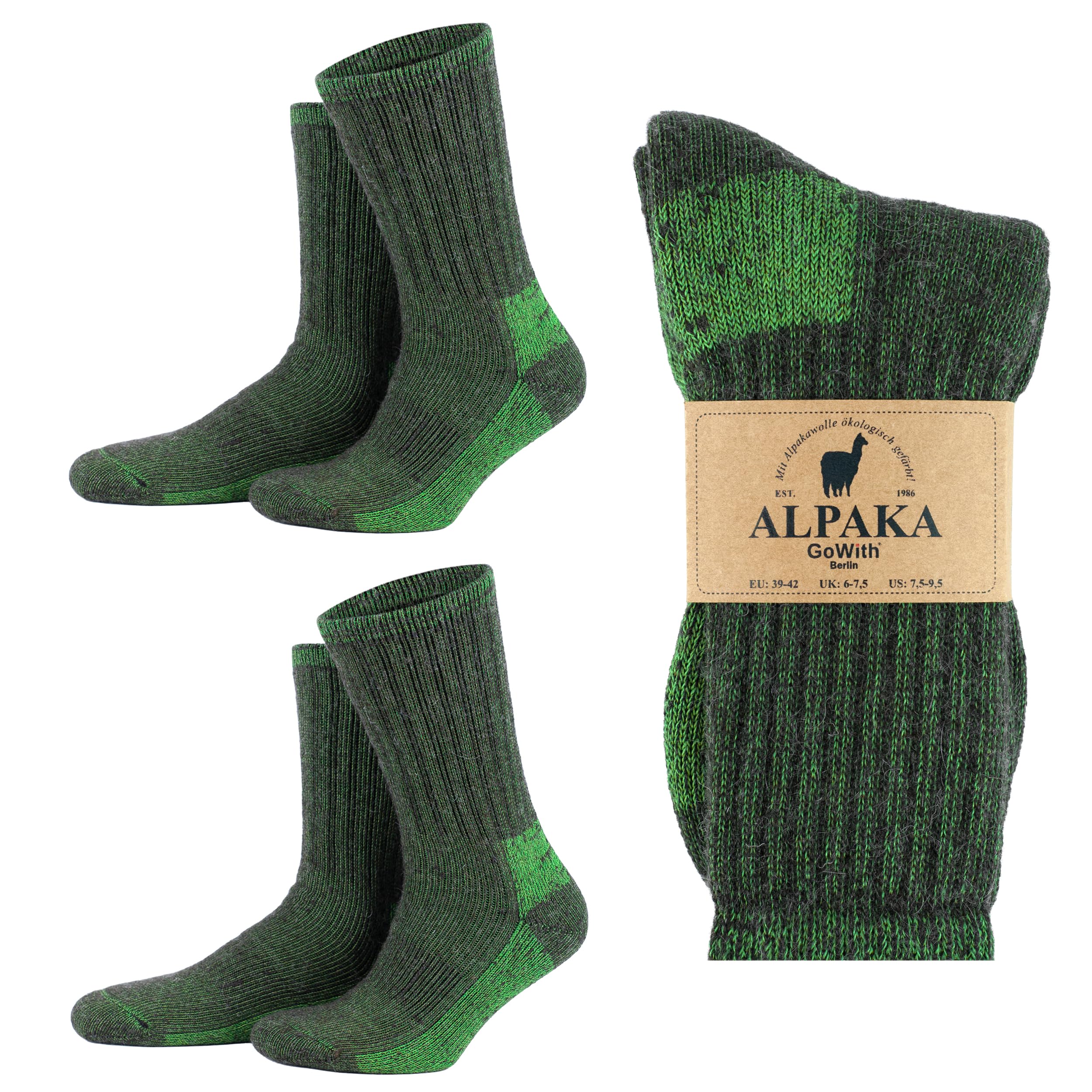 GoWith 2 Pairs Hiking Alpaca Wool Crew Socks for Men & Women, Merino Wool Full Cushioned & Terry Cozy Fuzzy Socks|Clothing
