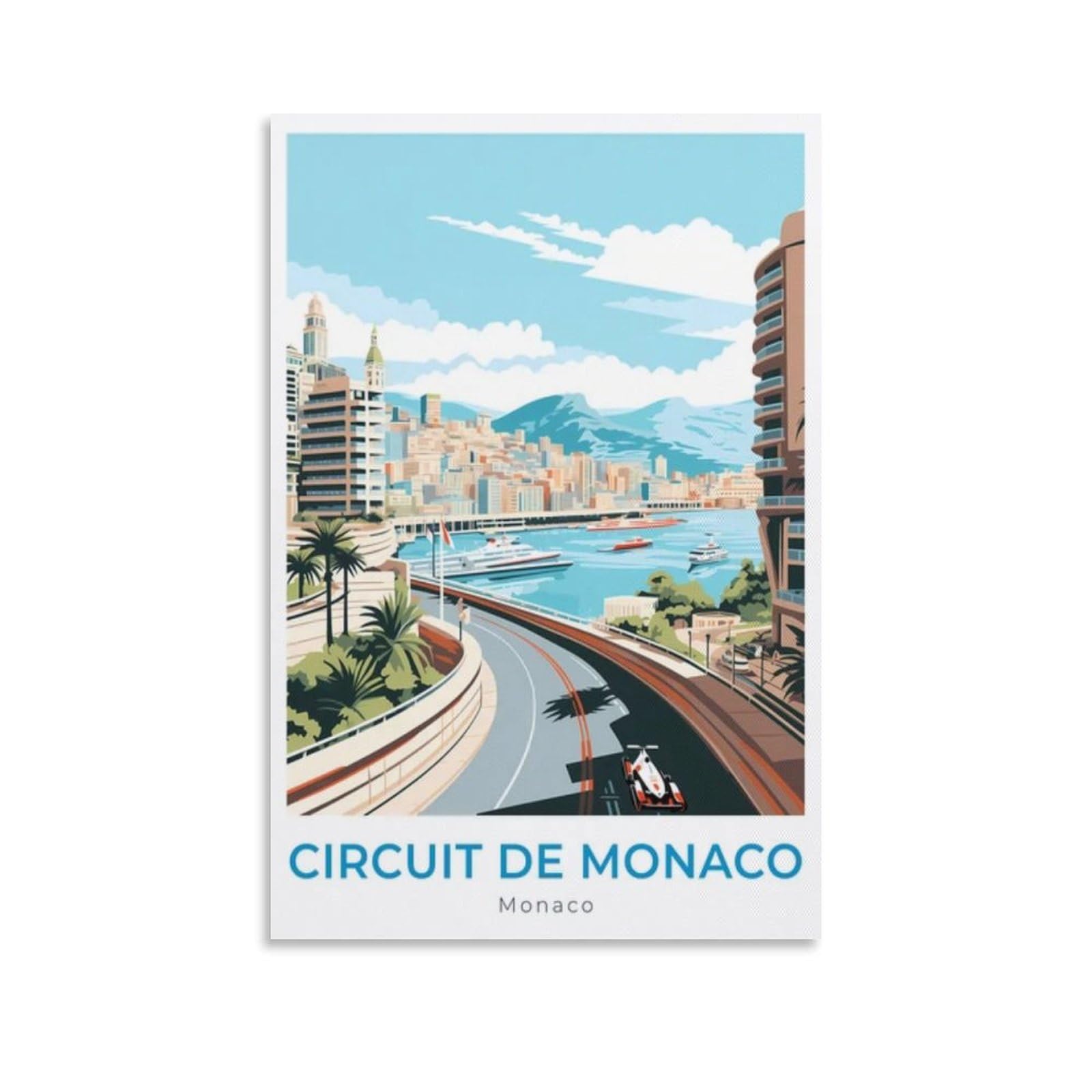 Circuit De Monaco Travel Poster Canvas Wall Art Print Vintage Travel Framed & Unframed Home Room Decor Picture 12x18inch(30x45cm)|Home & Garden