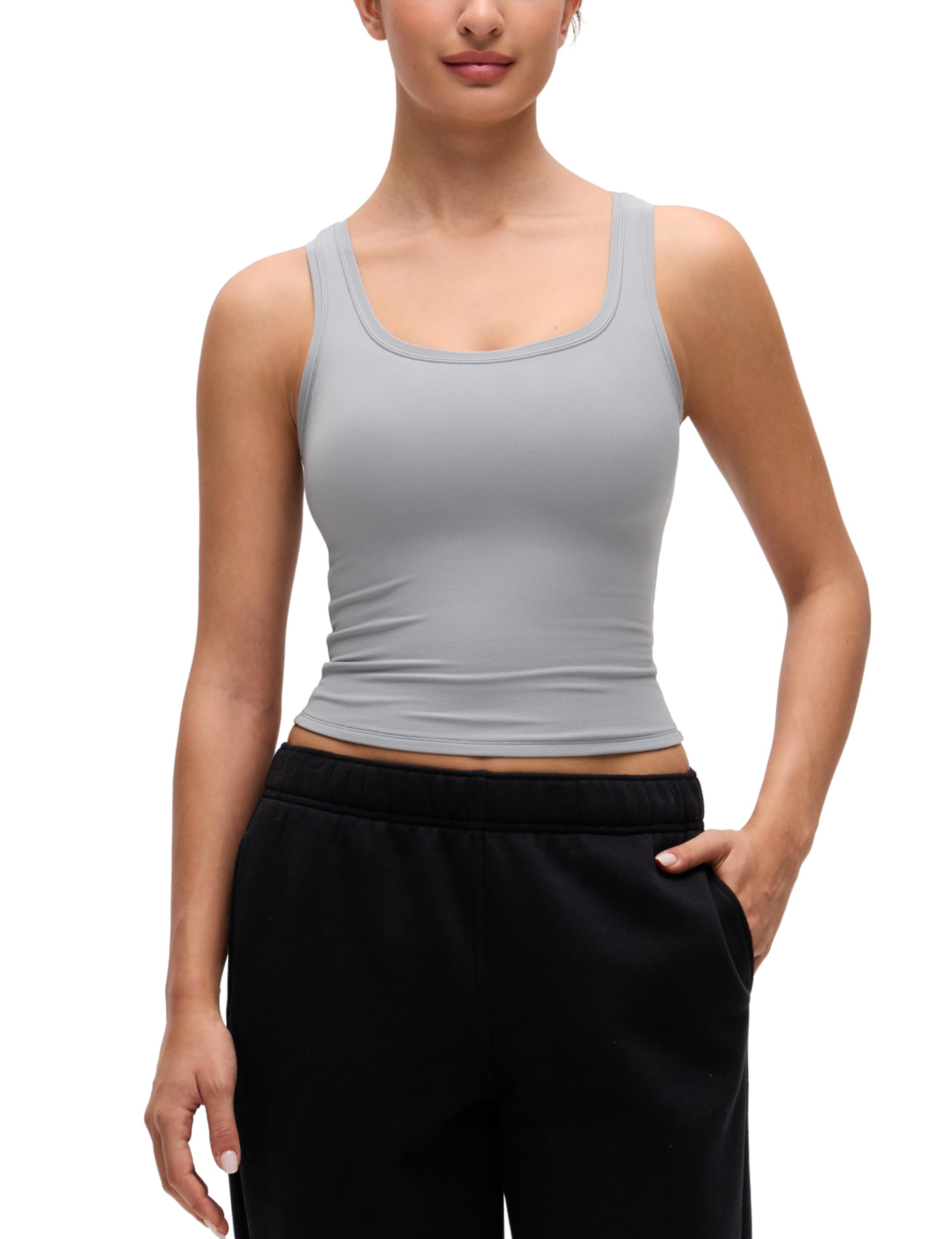 CRZ YOGA Softembrace Scoop Neck Tank Tops for Women - Casual Going Out Soft Double Lined Crop Basic Sleeveless Shirts|Clothing