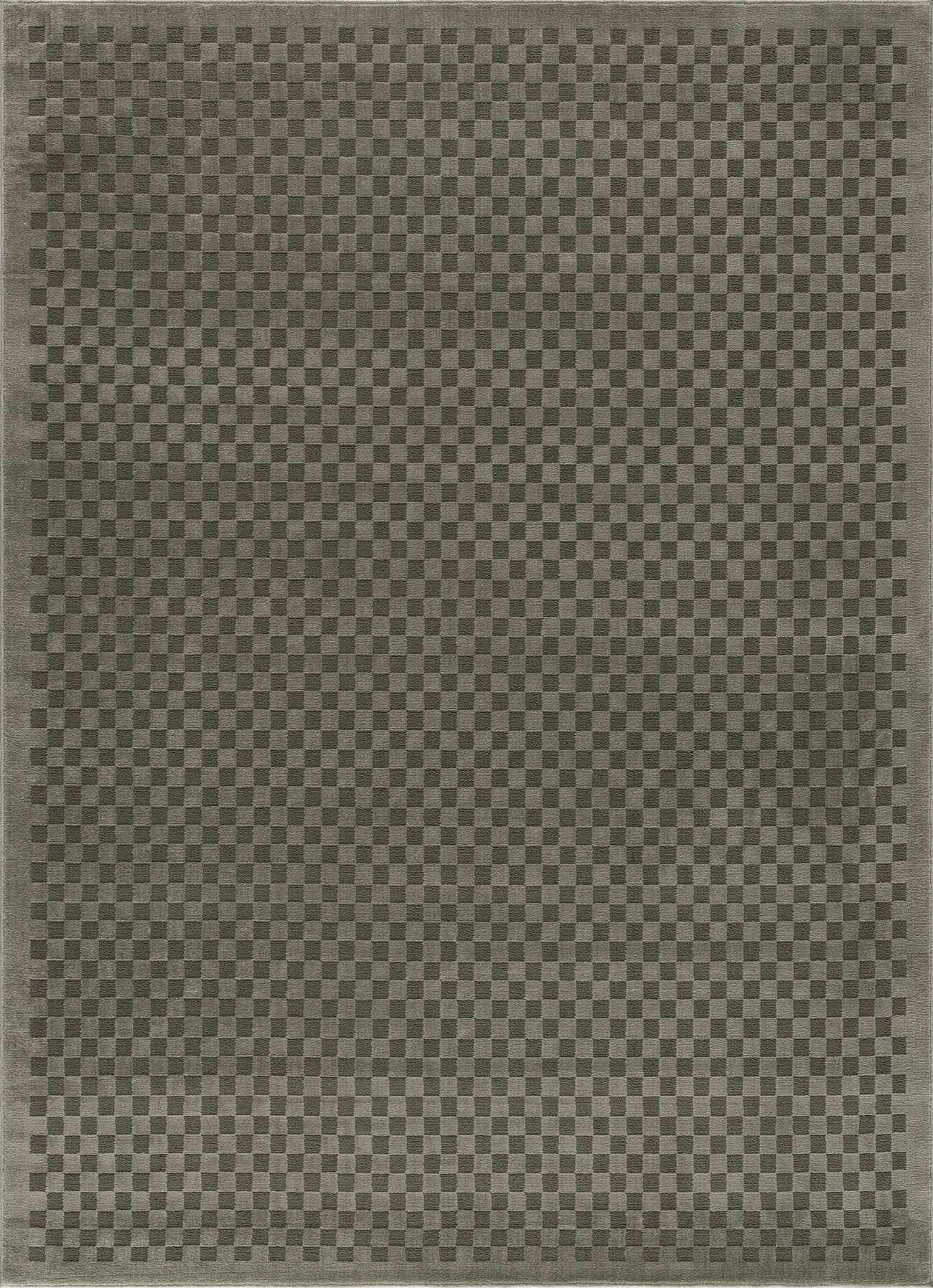 Hauteloom Gaiwan Machine Washable Area Rug - Checkered Checkerboard Geometric Border Square - Contemporary Tone On Modern Minimalist - Gray Green,|Furniture