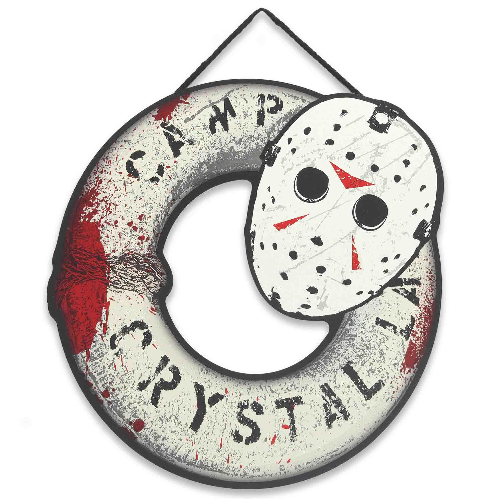 Open Road Brands Friday the 13th Horror Movie Wreath Hanging Wood Wall Decor - Scary Jason Mask Sign for Halloween Decorating|Home & Garden