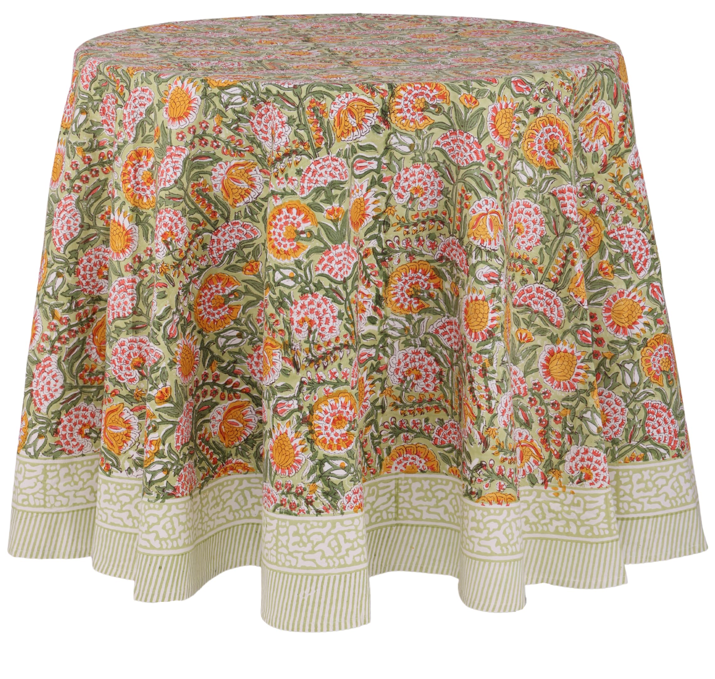 ATOSII Clover Green 100% Cotton Round Tablecloth, Hand Block Print Floral Table Cloth for Kitchen Dining Linen I Parties, Weddings, Outdoors, Holidays|Home & Garden
