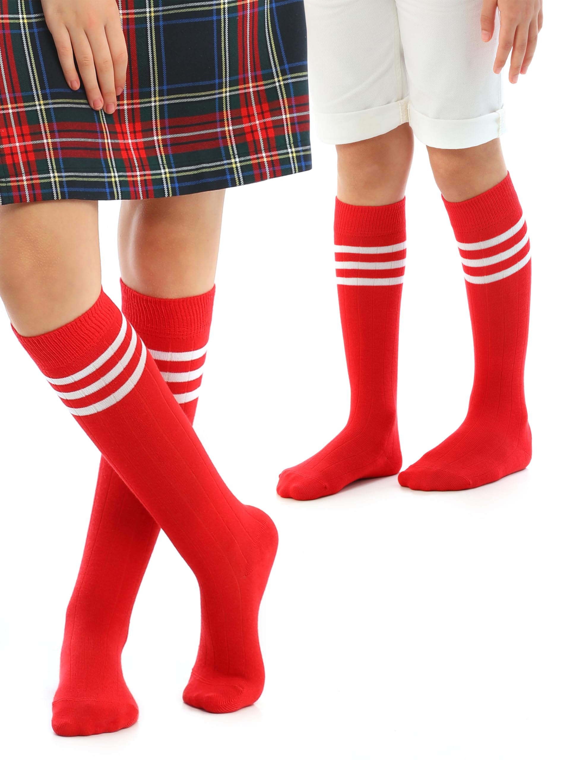 Hugh Ugoli Cotton Knee High Socks for Girls, Boys, Long Tube School Uniform Socks with Stripes, 5-14 Years Old, 4 Pairs|Clothing