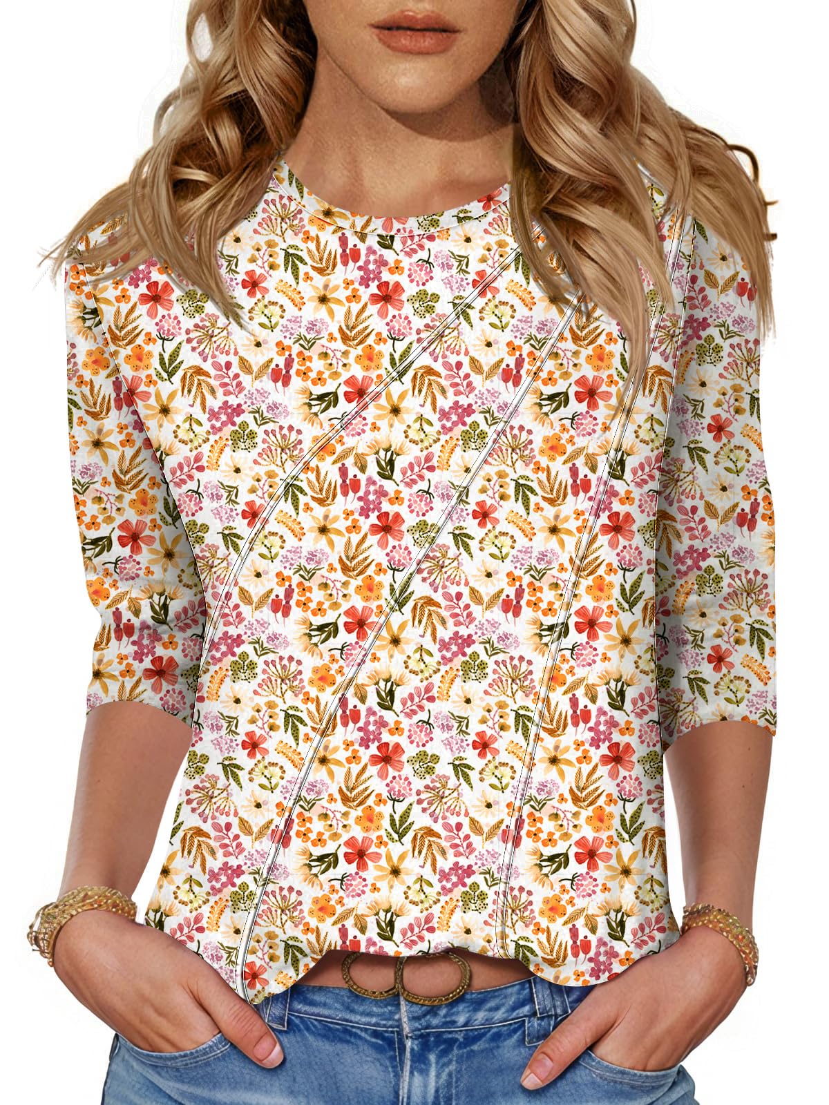 LOMON 3/4 Length Sleeve Womens Tops Spring Summer Fashion 2026 Tops Crew Neck Pleated Shirts Tunic Top Loose Fit|Clothing