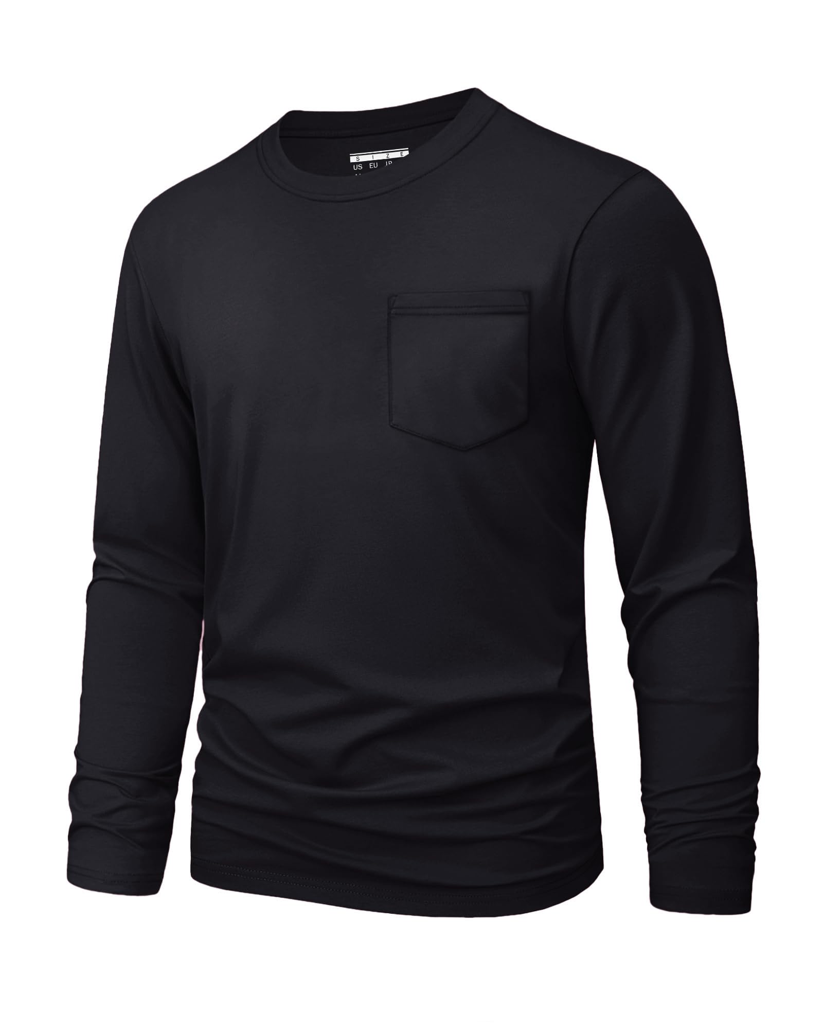 MAGNIVIT Men's Long Sleeve Cotton Shirts with Pocket Crew Neck Casual T-Shirt Regular Fit Solid Top Soft Shirt 2026|Clothing