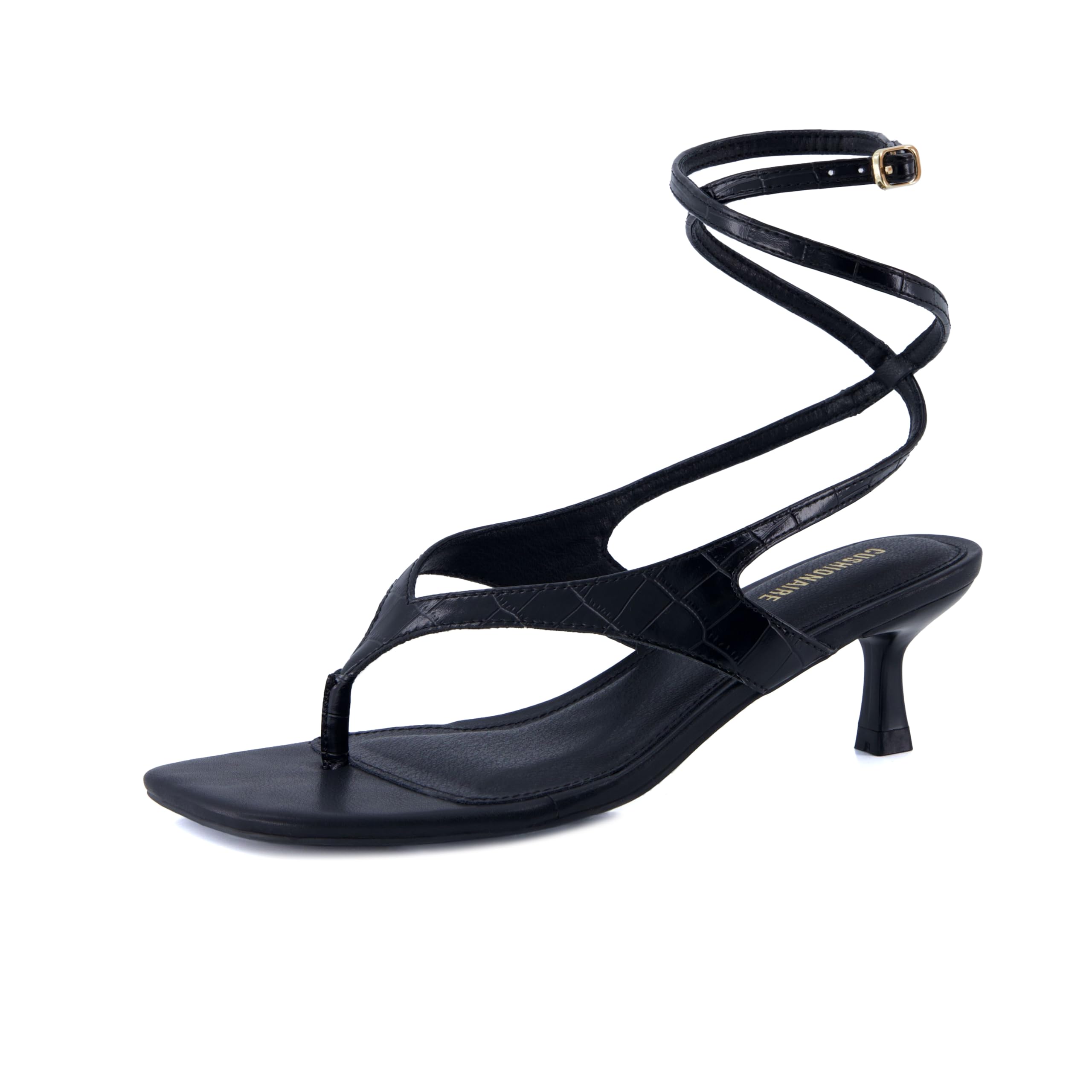 CUSHIONAIRE Martini Women’s Ankle Wrap Heel Sandal – Strappy Faux Leather Thong with Kitten Heel & Cushioned Footbed|Shoes