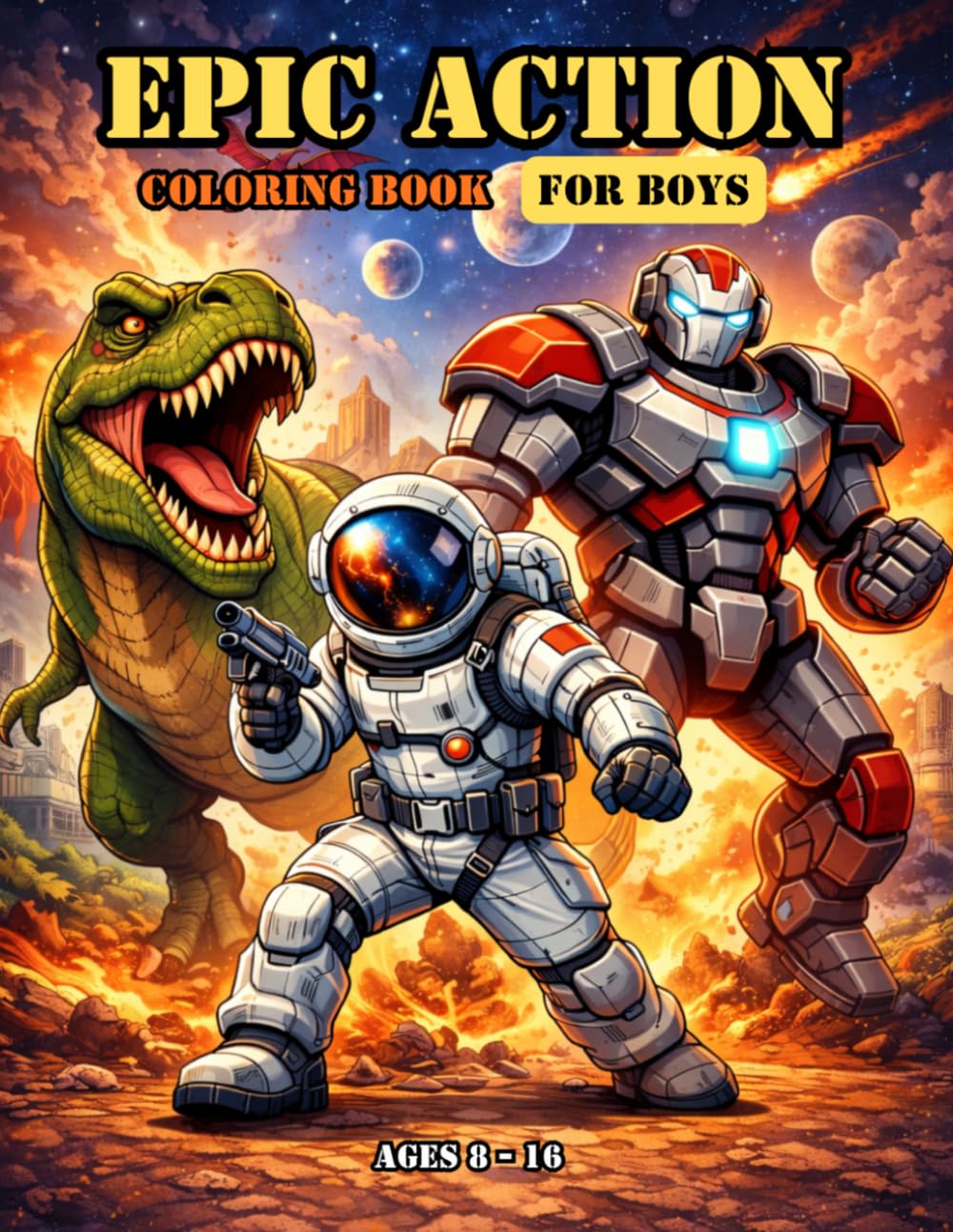 Epic Action Coloring Book For Boys Ages 8-16: Cool Dinosaurs, Space Battles, Robots, Tanks & Fantasy Adventures - Perfect For Older Kids & Teens (|Books