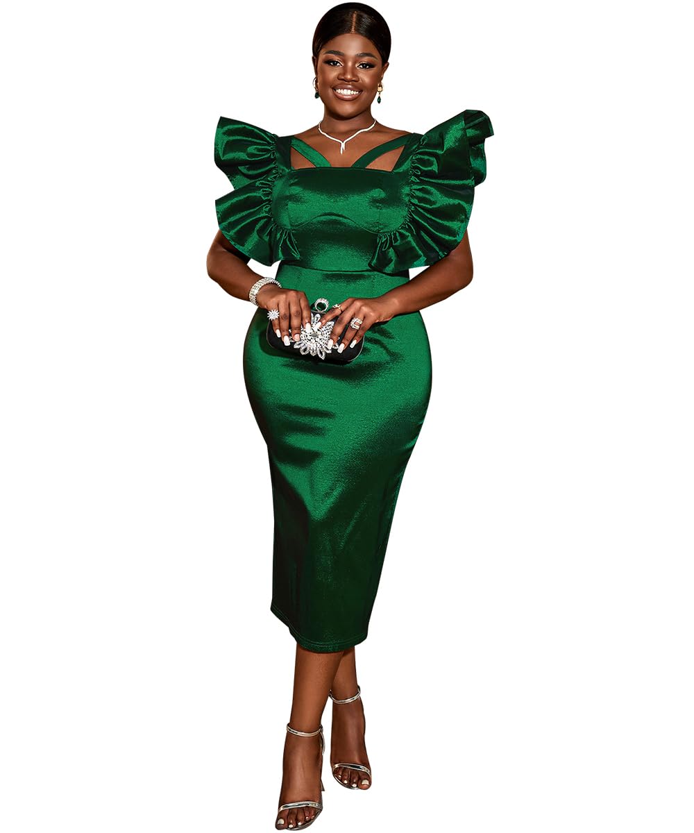 AOMEI Plus Size Ruffle Sleeve Midi Party Dress Cut Out Bodycon Dresses for Women Cocktail Birthday Formal|Clothing